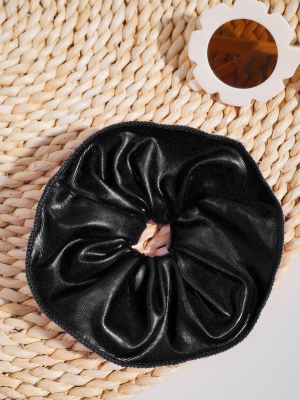 Wide and ruffled scrunchie with metallic appearance, is 12-36cm/4.7-14 inch in width.