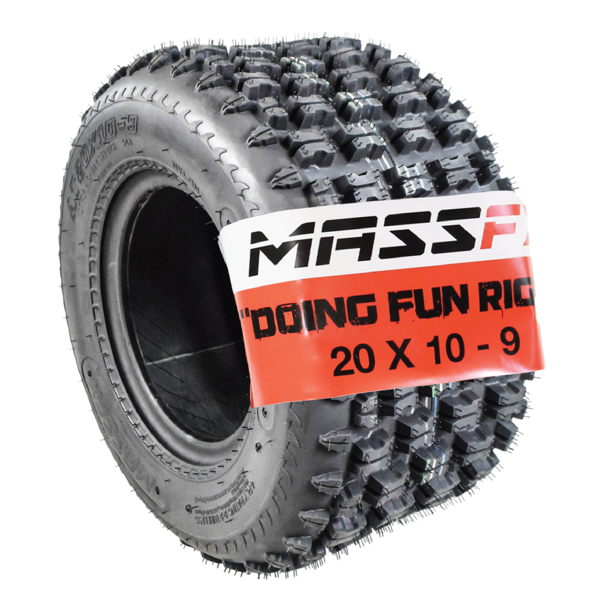 The MASSFX ATV Tires are here to handle whatever challenges your outdoor tasks throw at you. Designed with a robust 4-Ply Toughness Rating, these tires are tear-resistant and built to last, ensuring durability even in the face of rough terrain. These tires are durable enough to tame even the toughest terrains. Featuring a chevron tread pattern, these tires deliver exceptional static and high-motion grip control for enhanced performance on any surface. The 20x10-9 model boasts an impressive 4mm tread depth, providing excellent traction and stability for a variety of tasks.- Durable 4-ply bias construction