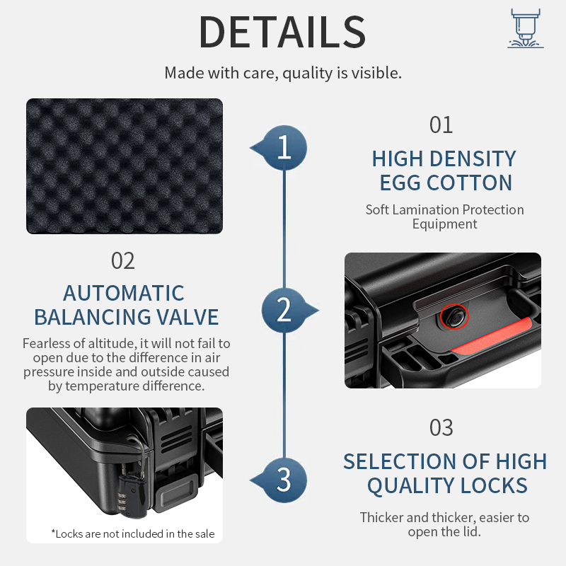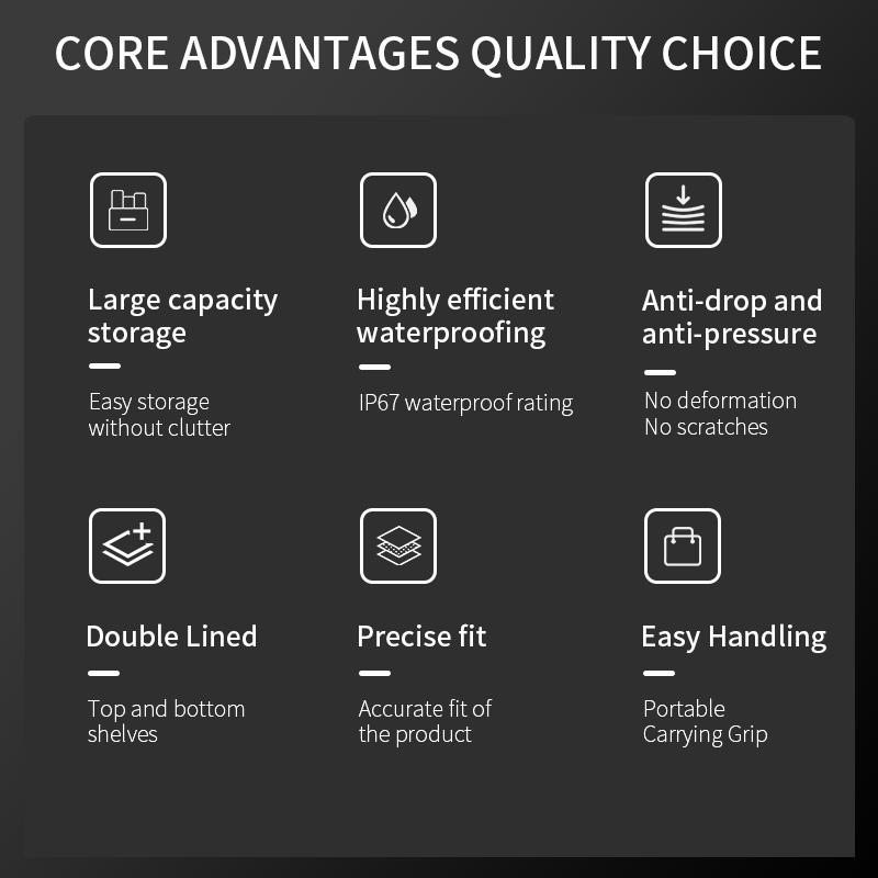 3. Strong sealing performance. The outer box is designed with valves to ensure good internal space, with an IP67 rating, waterproof and dustproof, ensuring that your product is dry and clean;