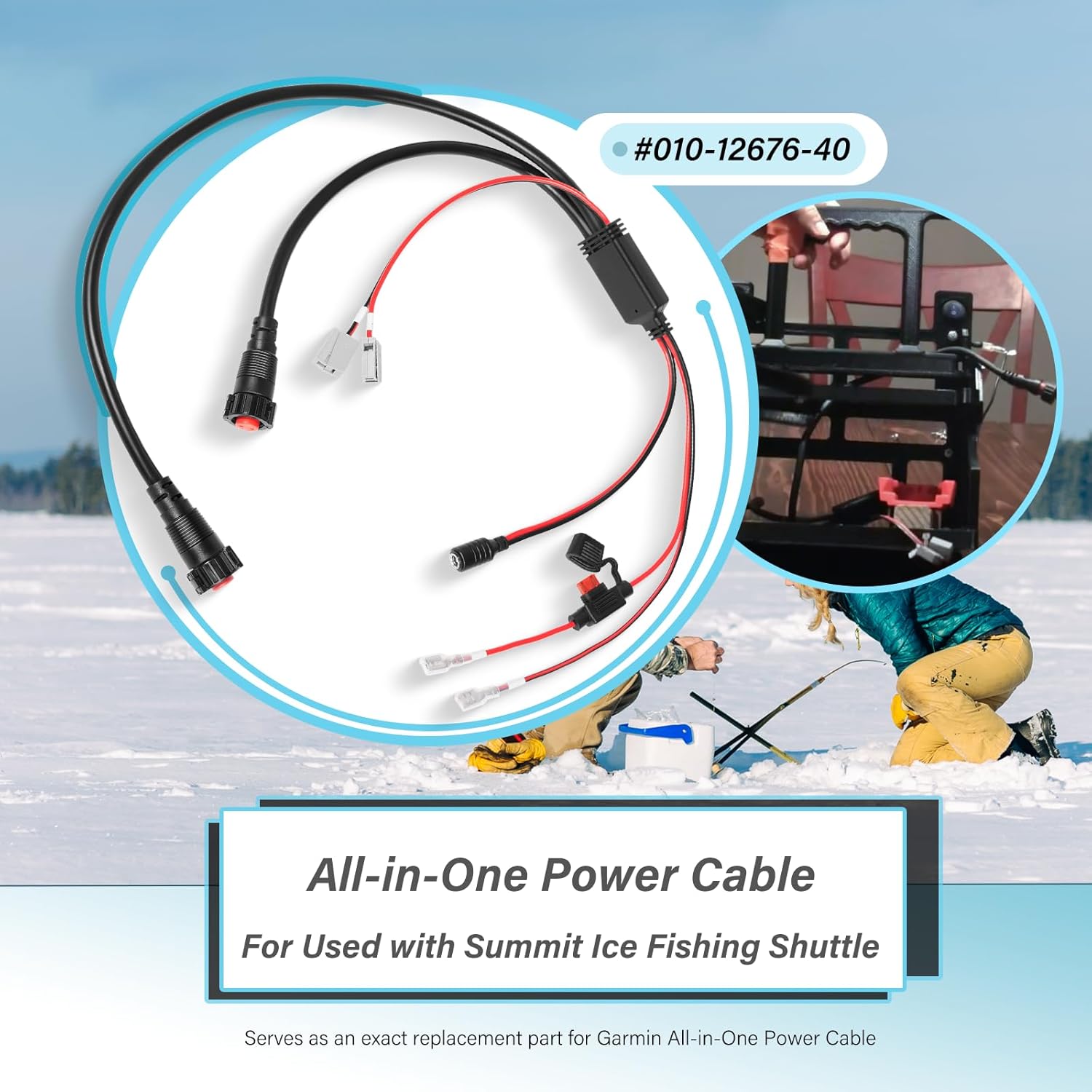 Connect your Panoptix LiveScope System or Panoptix PS22 transducer and compatible ECHOMAP chartplotter to the battery of your compatible Panoptix ice fishing bundle with this power cable