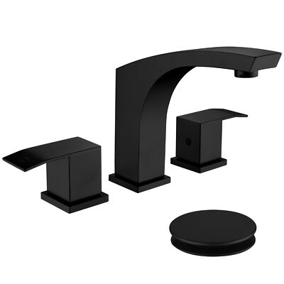 3 Hole Bathroom Faucet Matte Black, 2 Handle 8 inch Widespread Bathroom Sink Faucet with Pop Up Drain and cUPC Supply Hose, Black Bathroom Faucet for Sink 3 Hole WI37151BK