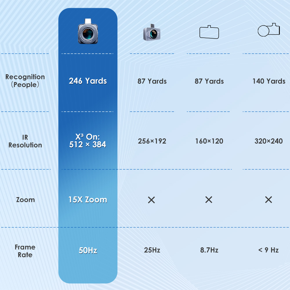 ●【50Hz High Frame Rate】 X2 is the world's first thermal camera for phones with a 50Hz high frame rate. It provides clear and smooth imaging, easily capturing targets even in fast motion. With its all-metal body and IP65 rating, it withstands heavy rain and ocean waves. You will never lose raccoons and waterfowl during harsh weather.