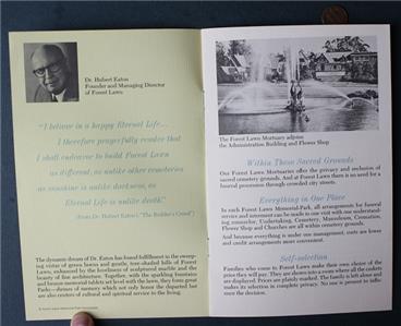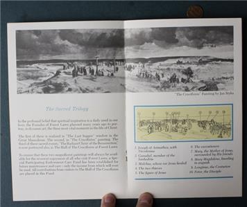 Forest Lawn Memorial Park is a privately owned cemetery in Glendale, California, US. It is the original and current flagship location of Forest Lawn Memorial-Parks & Mortuaries, a chain of six cemeteries and four additional mortuaries in Southern California. Forest Lawn Memorial Park was founded in 1906 as a not-for-profit cemetery by a group of businessmen from San Francisco. Dr. Hubert Eaton and C. B. Sims entered into a sales contract with the cemetery in 1912. Eaton took over the management of the cemetery in 1917. Although Eaton did not start Forest Lawn Cemetery, he is credited as being the "Founder" of Forest Lawn Memorial-Park for his innovations of establishing the "memorial park plan" (eliminating upright grave markers and bringing in works by established artists) and being the first to open a funeral home on dedicated cemetery grounds. Eaton was a firm believer in a joyous life after death. He was convinced that most cemeteries were "unsightly, depressing stoneyards" and pledged to create one that would reflect his optimistic, Christian beliefs, "as unlike other cemeteries as sunshine is unlike darkness." He envisioned Forest Lawn to be "a great park devoid of misshapen monuments and other signs of earthly death, but filled with towering trees, sweeping lawns, splashing fountains, beautiful statuary, and ... memorial architecture."[citation needed] A number of plaques which state Eaton's intentions are signed "The Builder." Frederick Llewellyn, Eaton's nephew, became CEO of Forest Lawn in 1966. In 1987 he was succeeded by his son, John Llewellyn, who is the current Chairman of Forest Lawn. Most of its burial sections have evocative names, including Eventide, Babyland (for infants, shaped like a heart), Graceland, Inspiration Slope, Slumberland (for children and adolescents), Sweet Memories, Whispering Pines, Vesperland, Borderland (on the edge of the cemetery), and Dawn of Tomorrow. The original Forest Lawn participated in racial segregation and "for decades refused entrance to blacks, Jews, and Chinese". The Forest Lawn Museum in Glendale was founded in 1957 and displays art, artifacts and also regularly hosts rotating fine art exhibits. The museum has hosted solo exhibitions for Henri Matisse, Winslow Homer, Ian Hornak, Francisco Goya, Rembrandt, Marc Davis and Reuben Nakian among many others. The objects in Forest Lawn's permanent collection represent specific locations and peoples from around the world. There are sections for India, Africa, the Middle East, East and Southeast Asia, the United States, South America, Australia and Europe. Perhaps the most famous object owned by Forest Lawn's permanent collection is William Bouguereau's 84x60 inch, oil on canvas painting, "Song of the Angels" created in 1881 and regarded as one of the most important examples of Bouguereau's work in the United States. The permanent collection also includes one of the largest and most well respected stained glass collections in North America with over 1000 pieces primarily from France and Germany dating from 1200 A.D. through the present. The stained glass collection includes portions of William Randolph Hearst's former collection and owns the work of Albrecht Dürer and Viet Hirsvogel the Elder. The Museum also houses Western bronze sculptures, American historical artifacts, paintings, actual examples of every coin mentioned in the Bible, exact replicas of the British crown jewels, world cultural artifacts and one of the Easter Island statues, rescued from the bottom of a boat where it was used as ballast. It is named "Henry". All of these precious art pieces are put in storage or hidden behind temporary walls when a special display is on site. The six Forest Lawn cemeteries contain about 1,500 statues, about 10% of which are reproductions of famous works of art. Leonardo da Vinci's The Last Supper has been recreated in stained glass in the Memorial Court of Honor at the Glendale location ‘in vibrant, glowing and indestructible colors.’ There are also a number of full-sized reproductions of other Renaissance sculptures, including Michelangelo's David and Moses. This cemetery is the only place in the world containing a complete collection of replica Michelangelo sculptures, which were made from castings taken from the originals and use marble sourced from the original quarries in Carrara, Italy. Some of the inspiration at Forest Lawn in Glendale is patriotic rather than pious, such as the Court of Freedom, with its large mosaic of the Declaration of Independence and a 13-foot-tall statue of George Washington. On display in the "Hall of the Crucifixion" is the panoramic painting by the Polish artist Jan Styka entitled "The Crucifixion." It is the largest permanently mounted religious painting in the world, measuring 195 feet in length by 45 feet in height. The main gates of Forest Lawn – Glendale are claimed to be the world's largest wrought iron gates. Forest Lawn has three non-denominational chapels: "The Little Church of the Flowers", "The Wee Kirk o’ the Heather" and "The Church of the Recessional", which are all exact replicas of famous European churches. Over 60,000 people have actually been married here, including Ronald Reagan and Jane Wyman. More than 250,000 people are buried at Forest Lawn, and over a million people visit it each year, including thousands of schoolchildren on field trips. Forest Lawn's 300 acres of intensely landscaped grounds and thematic sculptures were the inspiration for the biting commentary of Evelyn Waugh's satirical novel The Loved One and Jessica Mitford's acerbic The American Way of Death. Many commentators have considered Forest Lawn to be a unique American creation, and perhaps a uniquely maudlin Los Angeles creation, with its "Disneyland-type theme park" approach to death. The Great Mausoleum was fashioned after Campo Santo in Genoa, Italy and contains many of the most highly sought after interment places within Forest Lawn, Glendale. Within the p