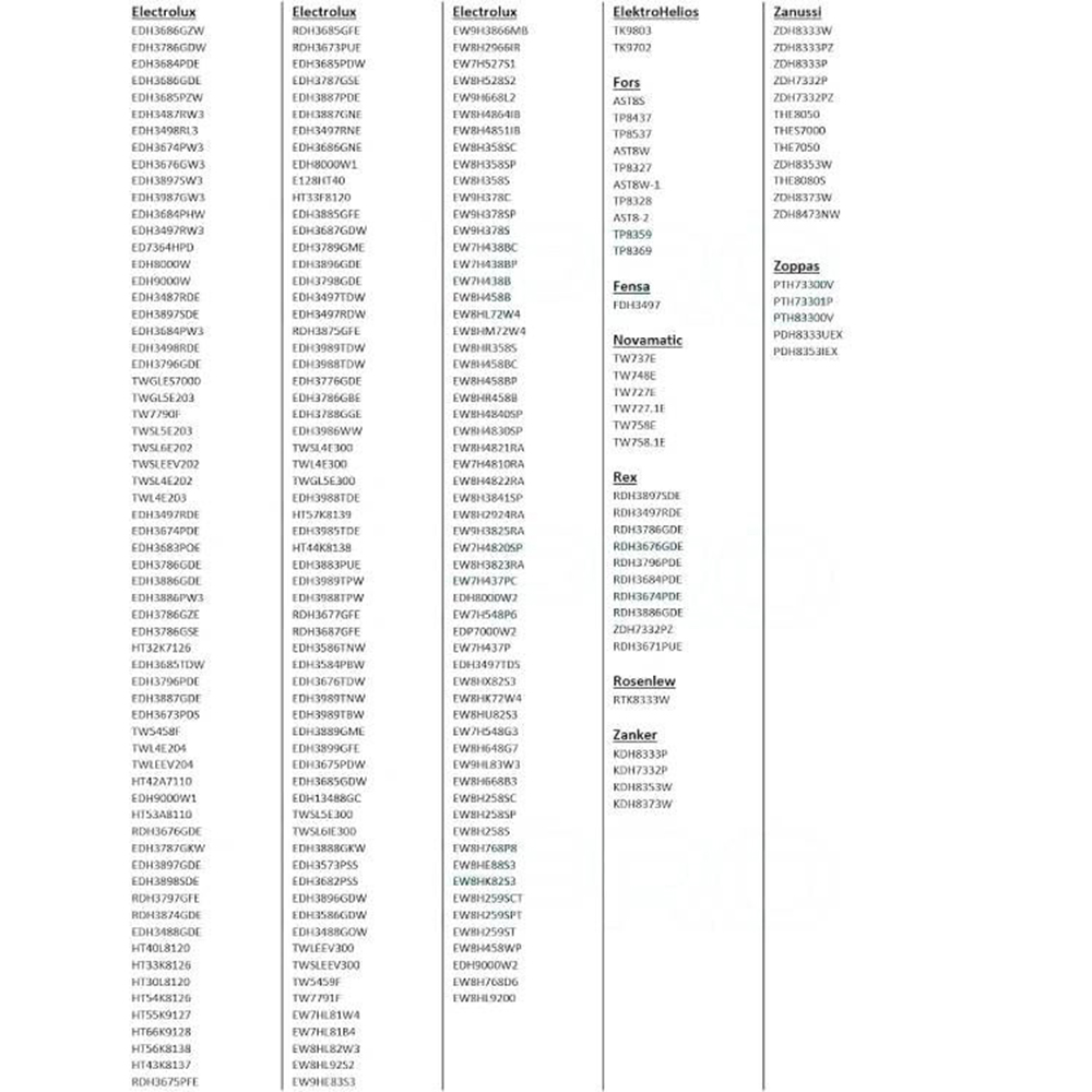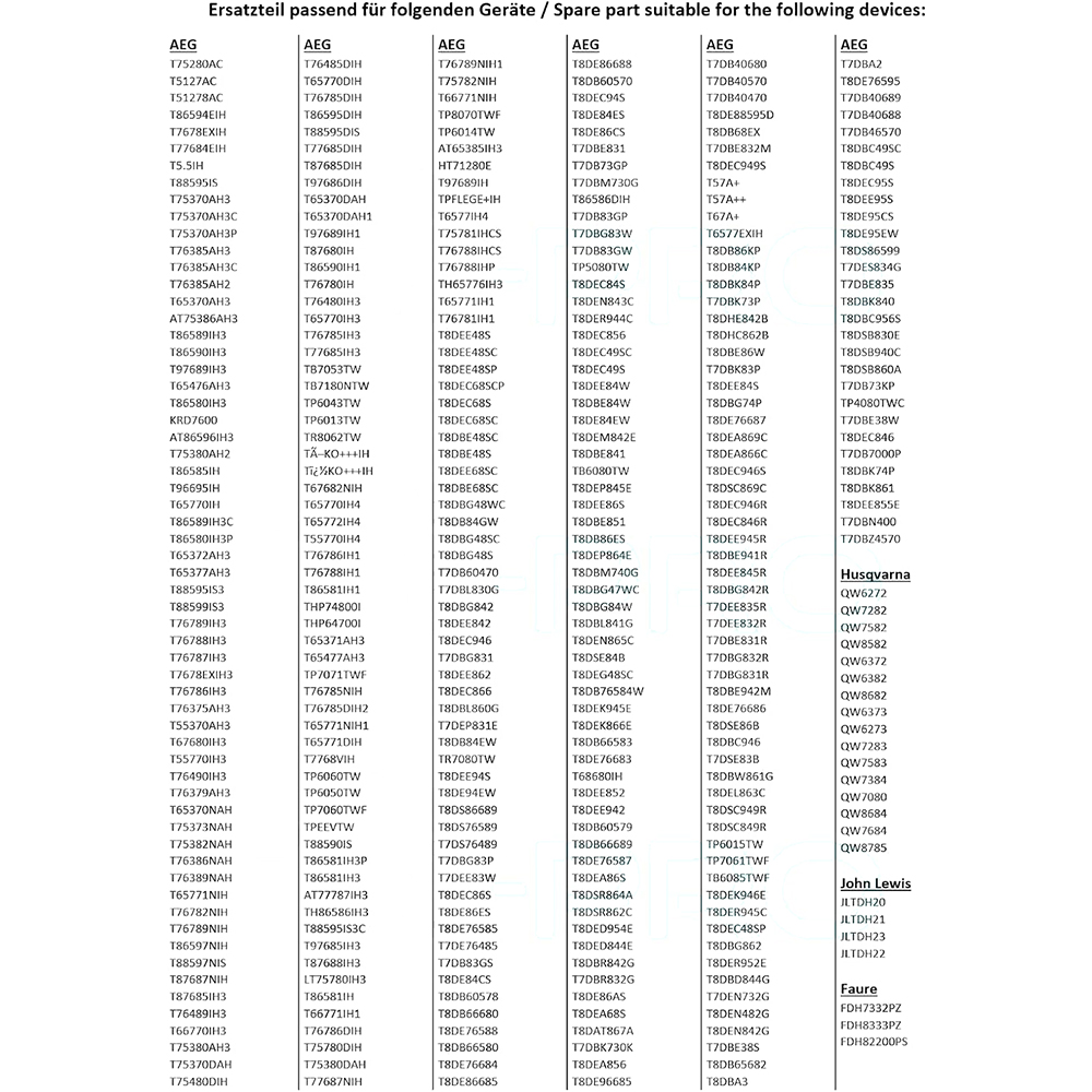 Eingesetzt in Geräten für AEG Electrolux Zanker Zanussi Zoppas