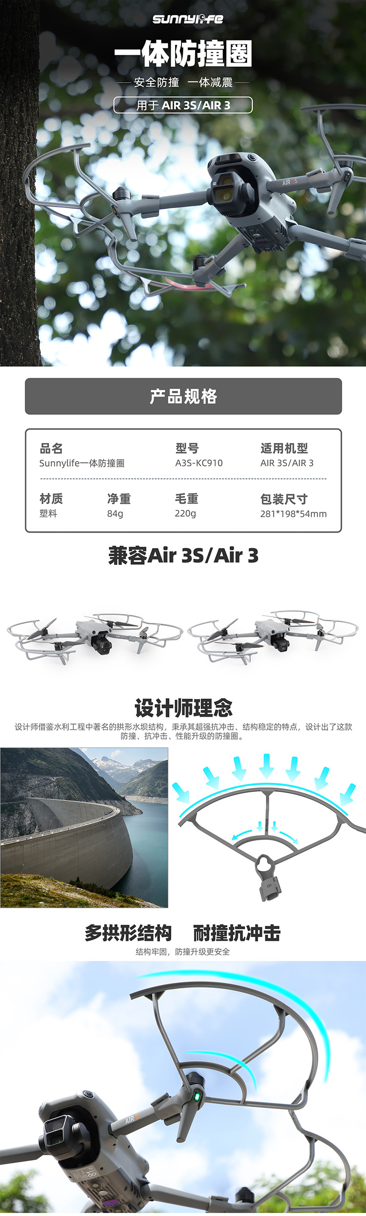 For AIR 3S/3 Anti-collision Ring Propeller Blade Protection Ring Quick Release Blade Safety Cover