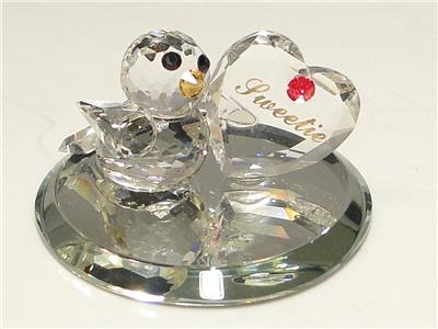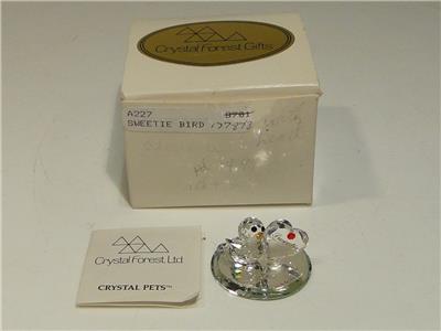 This is for a Crystal Fores Ltd Crystal Pets Sweetie Bird figurine. Handcrafted with 32% full lead crystal imported from Austria. Comes in original box with paperwork. 1 1/2x1". Bird is next to a heart that reads Sweetie. Perfect gift for Valentine's Day or for your collection.