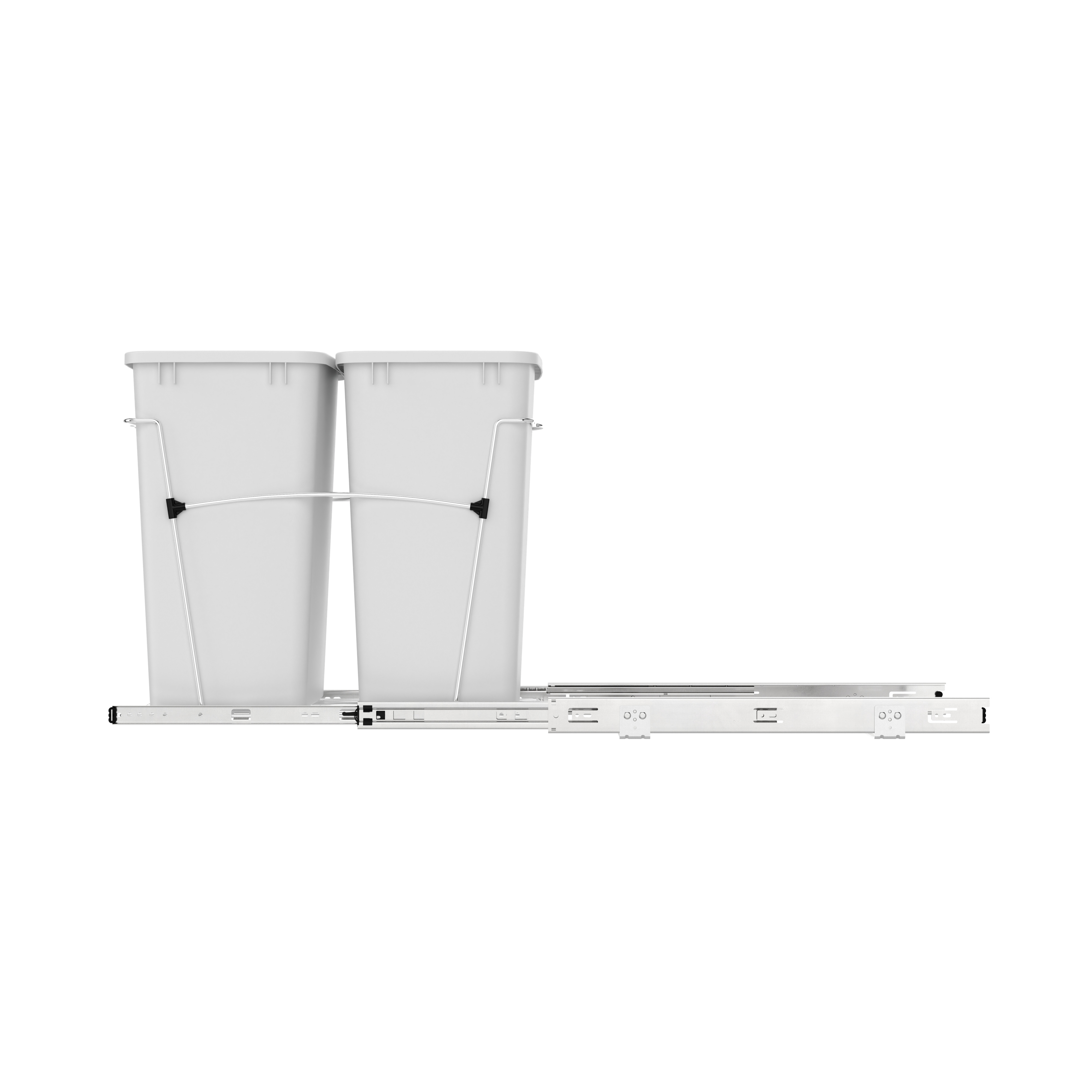 Featuring a large capacity, you'll spend more time enjoying your clean kitchen and less time taking out the waste or recycling items. This space-saving trash container system comes with all the hardware you need to install it easily and quickly to the cabinet floor. The handle can be removed if you prefer to mount the system to the cabinet door with the 5WB-DMKIT (sold separately).