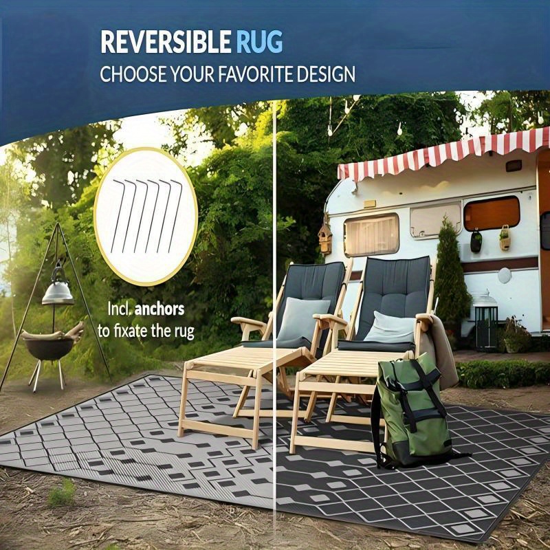 ANCHORS INCLUDED: The Six Anchors That Come With The Outdoor Rug Ensure That It Stays Securely In Place, Even On Windy Days. This Feature Makes It Ideal For Outdoor Use, As You Won't Have To Worry About Your Rug Flying Away In A Gust Of Wind.