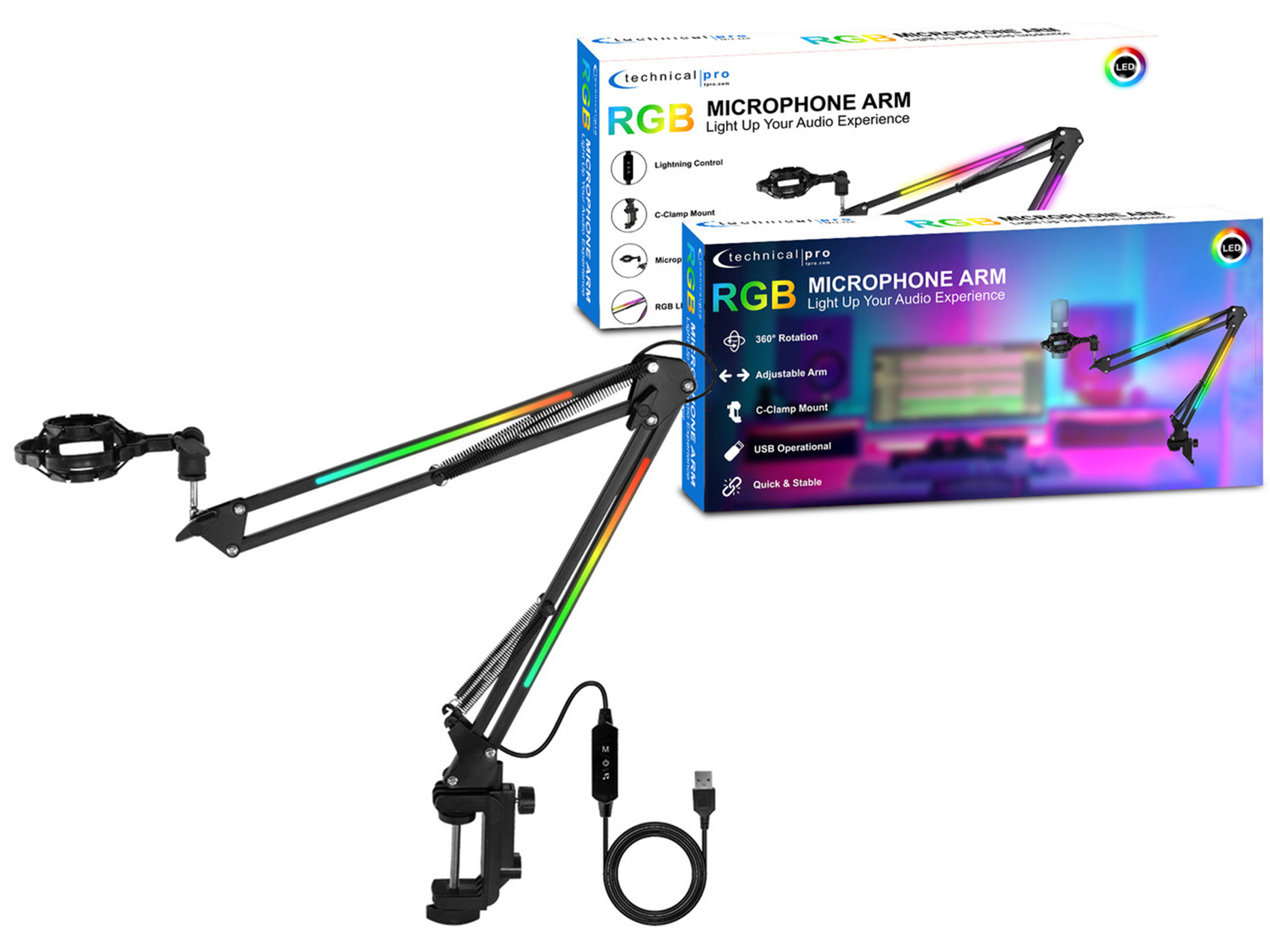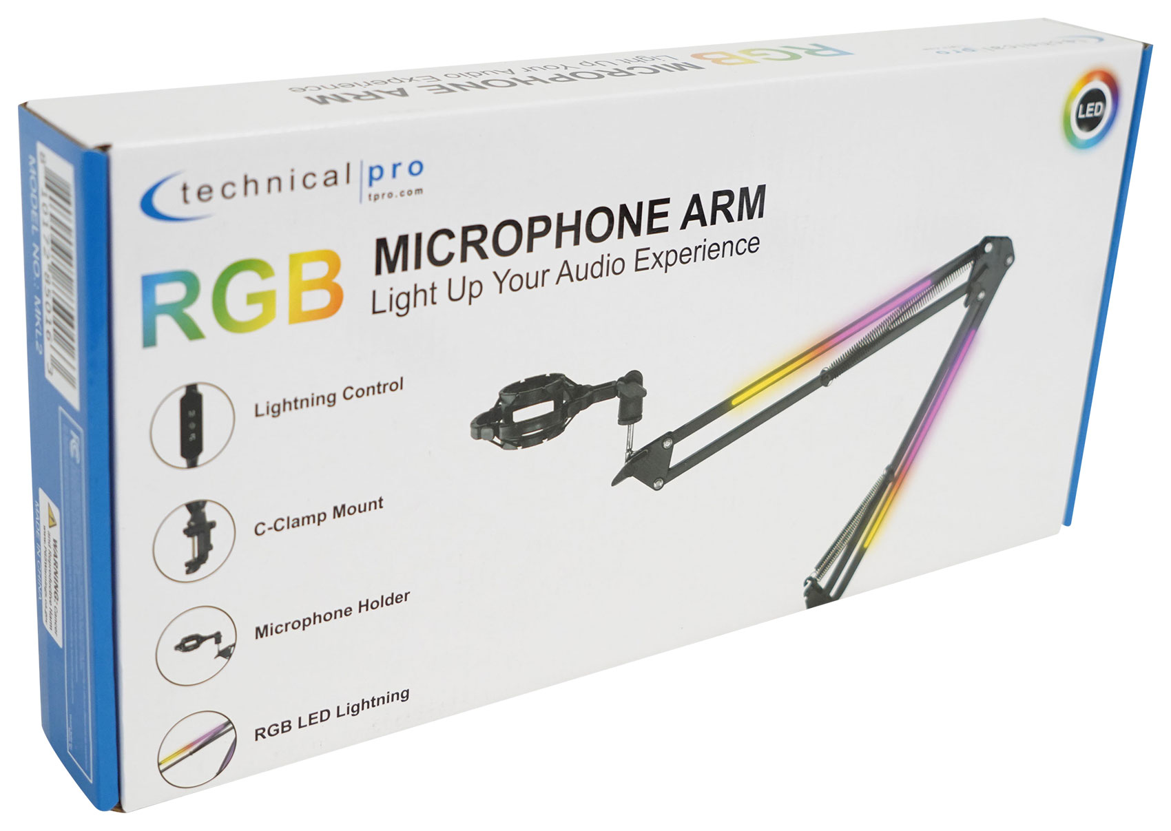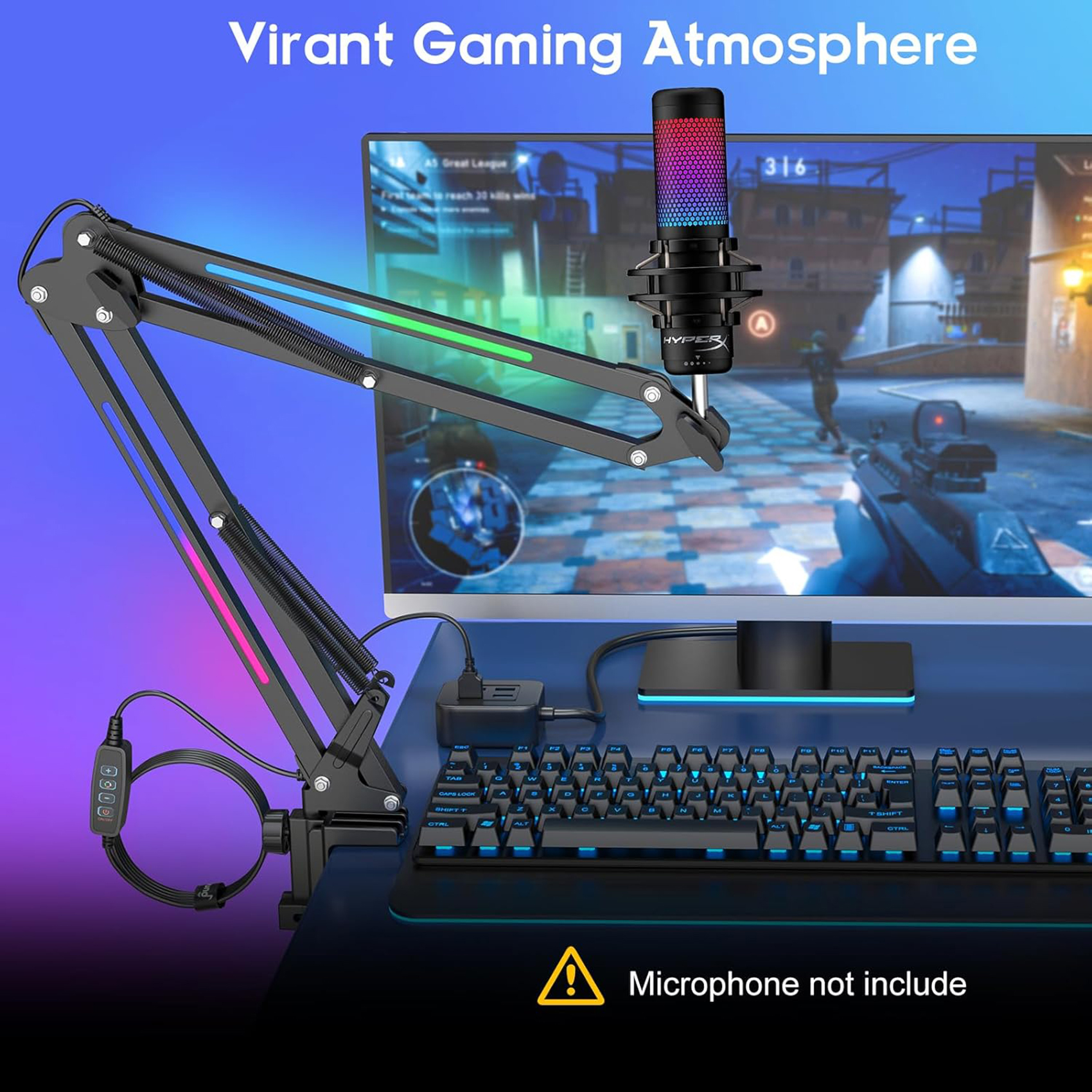 Comprehensive Kit: Includes the LED microphone arm, spider mic holder, table clamp, 3/8" to 5/8" screw adapter, 4 cable ties, and a user manual.
