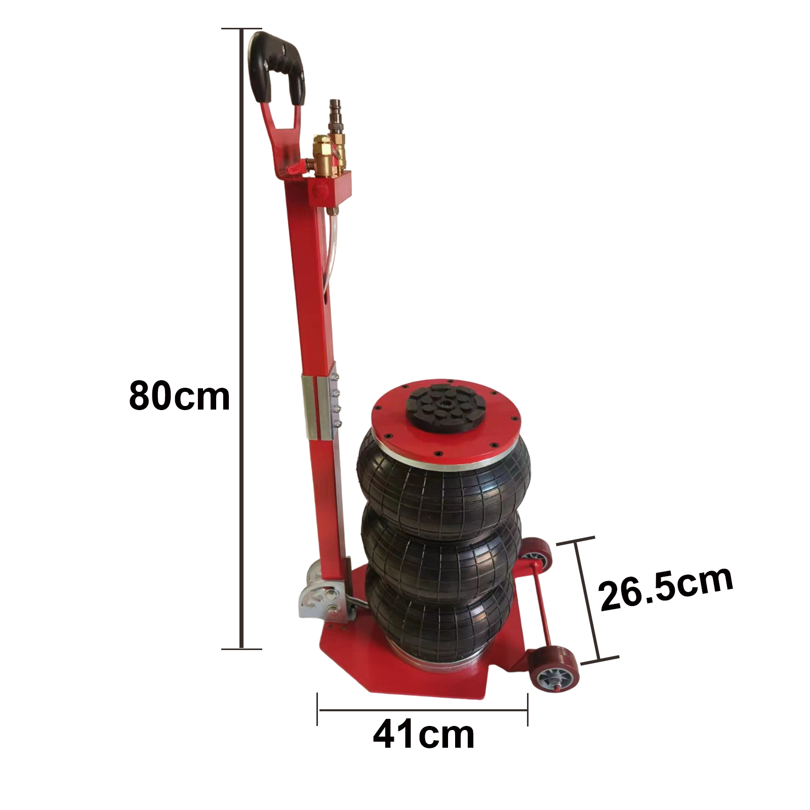 Die Kapazität des pneumatischen Wagenhebers: 6600 lbs / 3 T. Minimale Höhe: 5,5 Zoll / 150 mm.