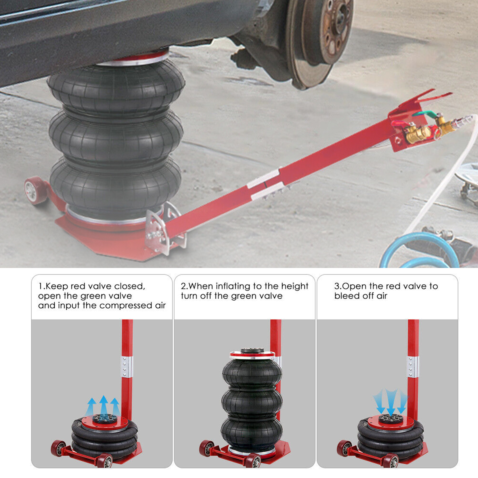 - Hochbelastbare Konstruktion: Unser pneumatischer Wagenheber besteht aus Stahl, der den gesamten Körper robust und langlebig macht. Hoch versiegelte Airbags werden nicht auslaufen oder zerkratzt werden.
