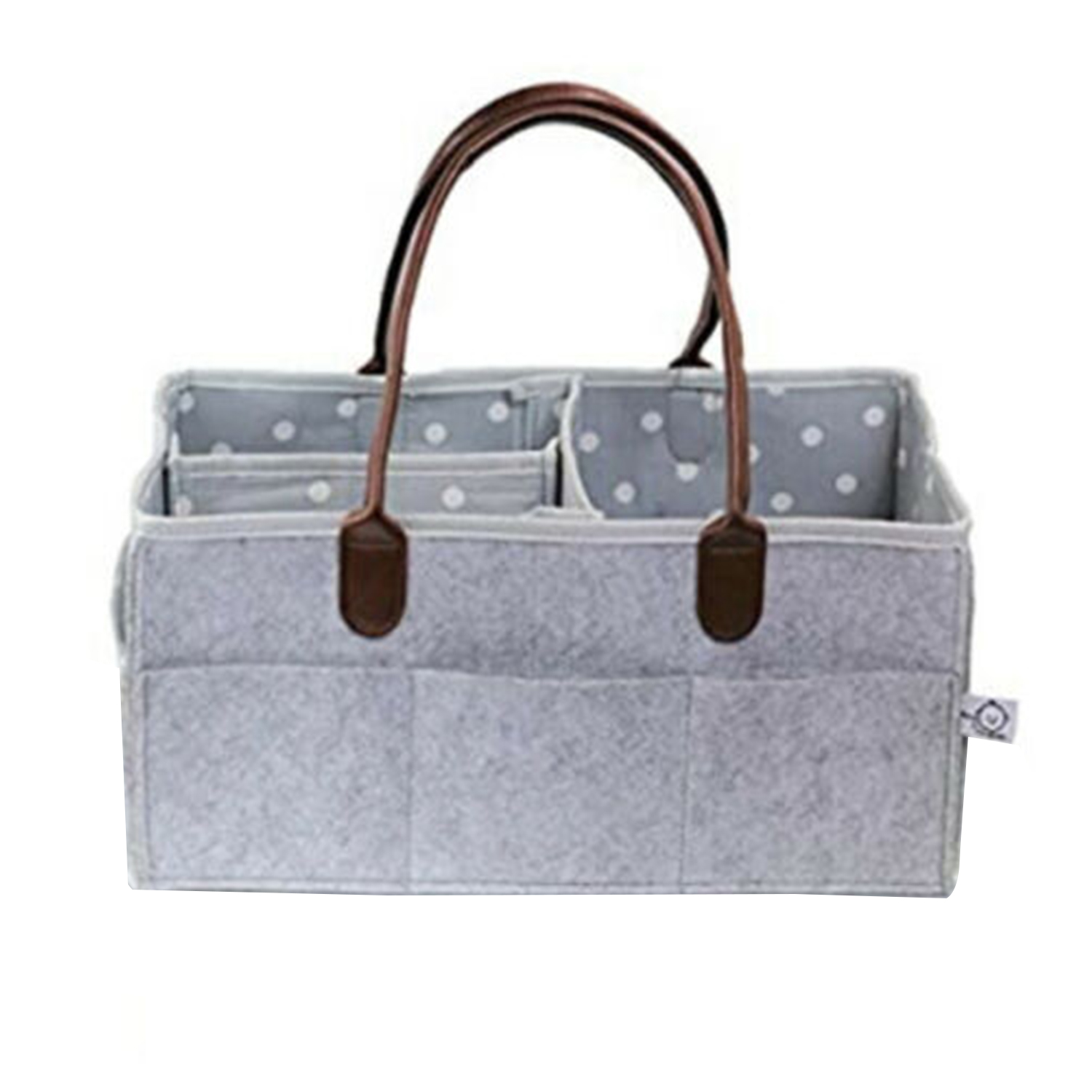 The light grey color adds a gender-neutral, modern touch to any nursery, and the playful polka dot accents add a fun touch to the design. The caddy is easy to maintain — simply spot clean with a damp towel and air dry as needed.