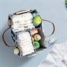 This caddy is designed to fit baby diapers, bottles, wipes, toys, books, and more. With adjustable velcro dividers, you can customize the space to fit your needs, whether you're carrying a few essentials or a full day's worth of items for your baby. Perfect for busy parents on-the-go!