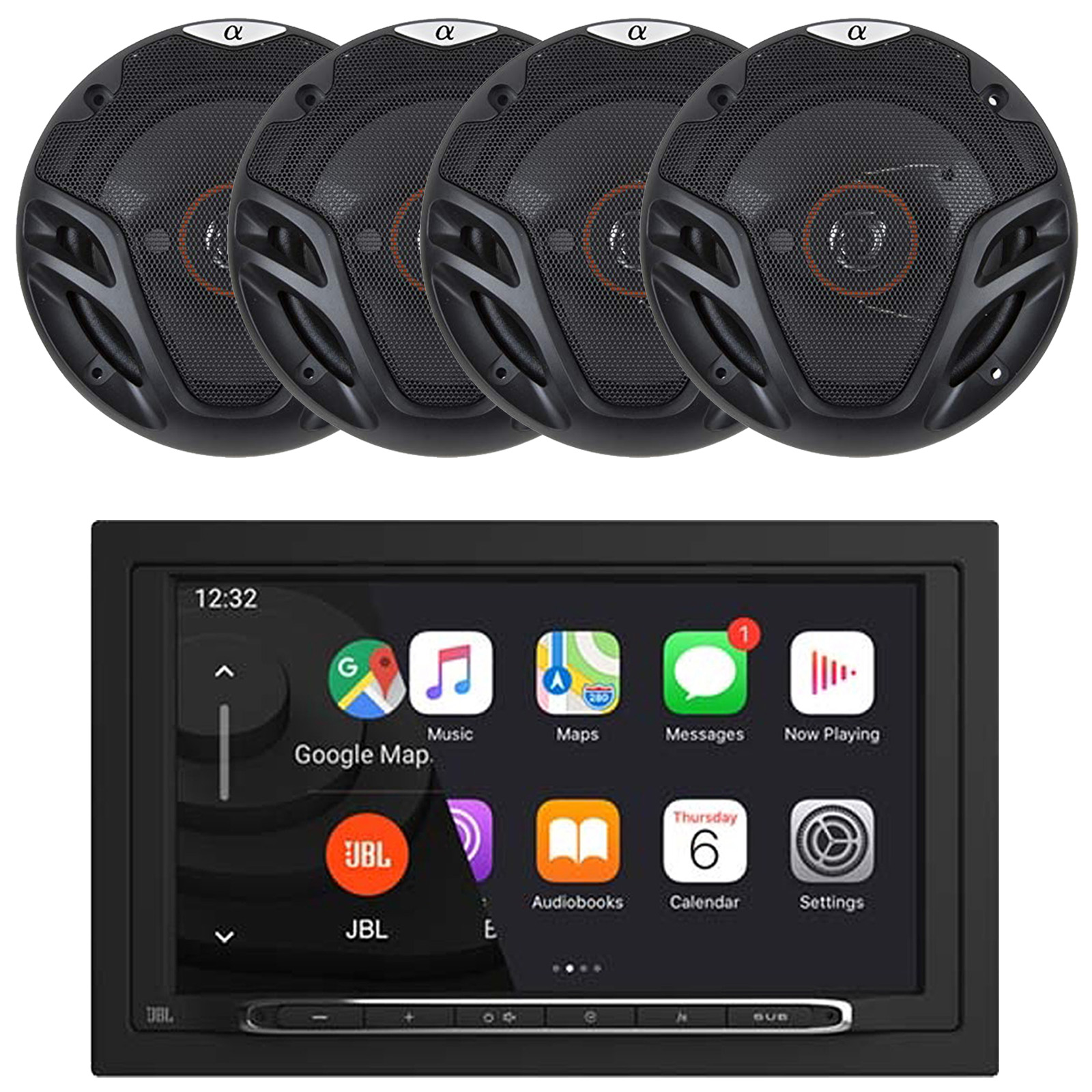 PACKAGE BUNDLE INCLUDES: JBL Legend 700 7” Touchscreen Display Double-DIN Mechless Bluetooth AM/FM Receiver W/Wireless Apple CarPlay & Android Auto, 4x Alphasonik AS26 6.5" 350 Watts Max Power Full Range Coaxial 3-Way Car Audio Speakers with Universal Mounting Holes for Easy Installation and Grills Included