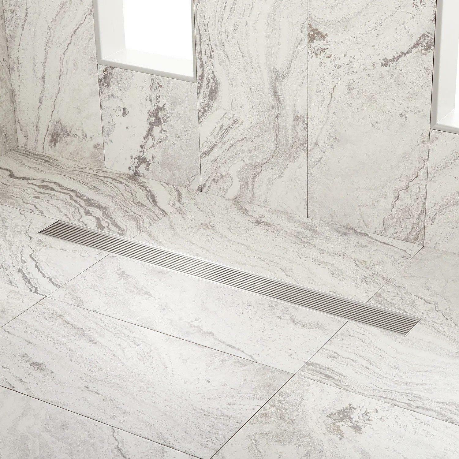 Signature Hardware Carmen 32" Linear Shower Drain, Brushed Stainless Steel