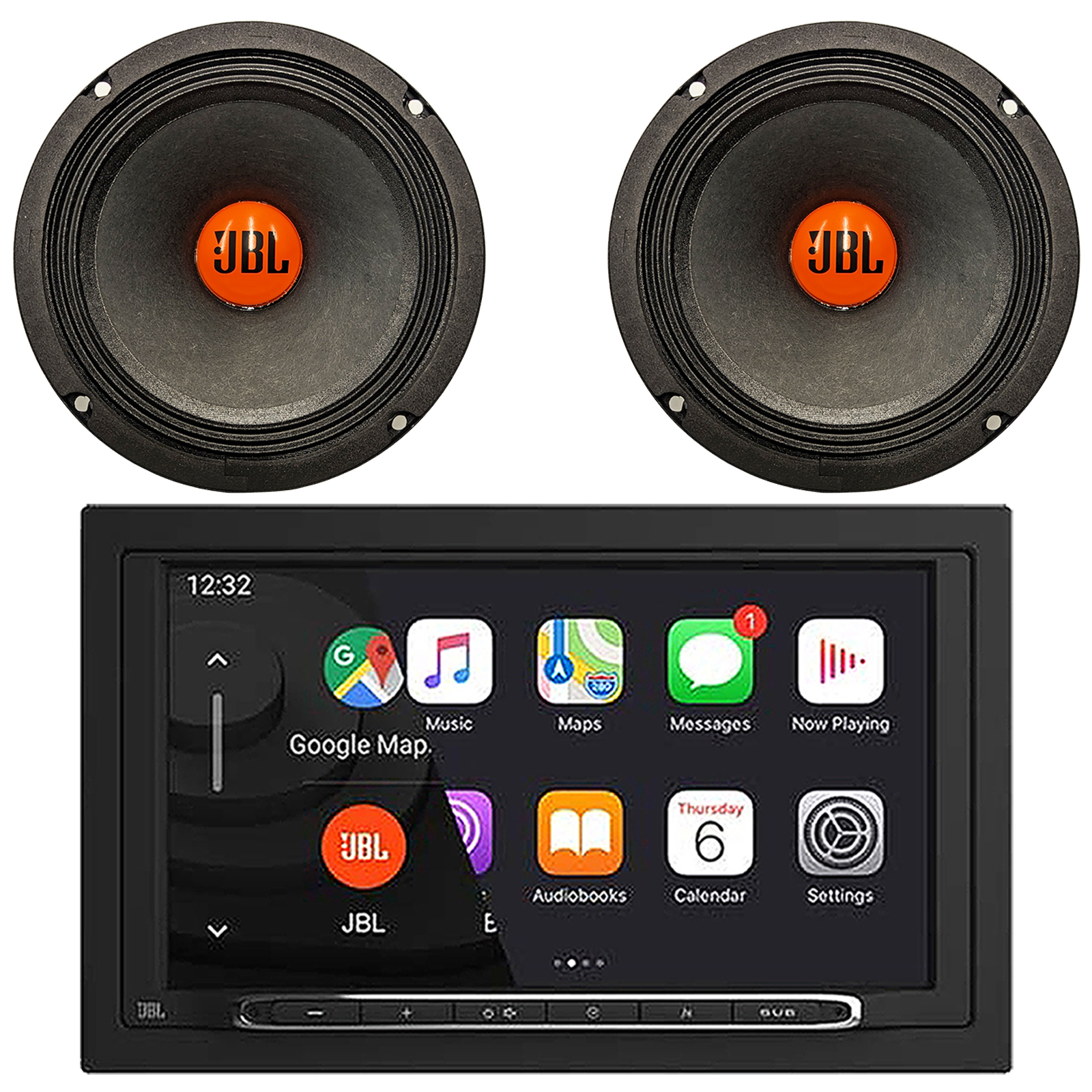 PACKAGE BUNDLE INCLUDES: JBL Legend 700 7” Touchscreen Display Double-DIN Mechless Bluetooth AM/FM Receiver W/Wireless Apple CarPlay & Android Auto, 2x JBL SHOCKWAVE150W65 6.5" 300 Watts Max Power Midrange Woofer Car Audio Speakers