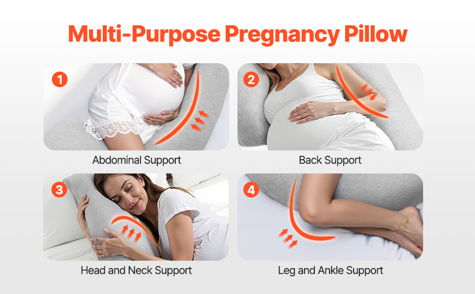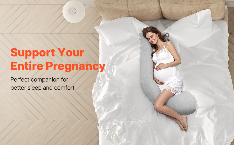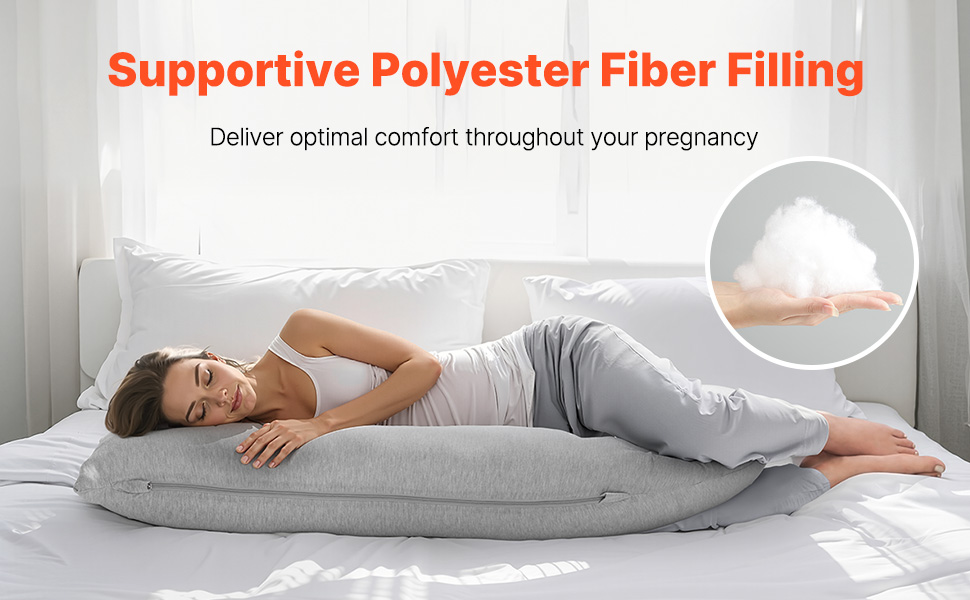 Ultimate Comfort: Indulge in cloud-like softness and fluffy support with our maternity pillow, filled with ≥1630g of premium polyester fiber for a plush, luxurious feel. And the breathable, skin-friendly jersey cotton cover provides a soft, gentle touch, cradling your body for deep relaxation.
