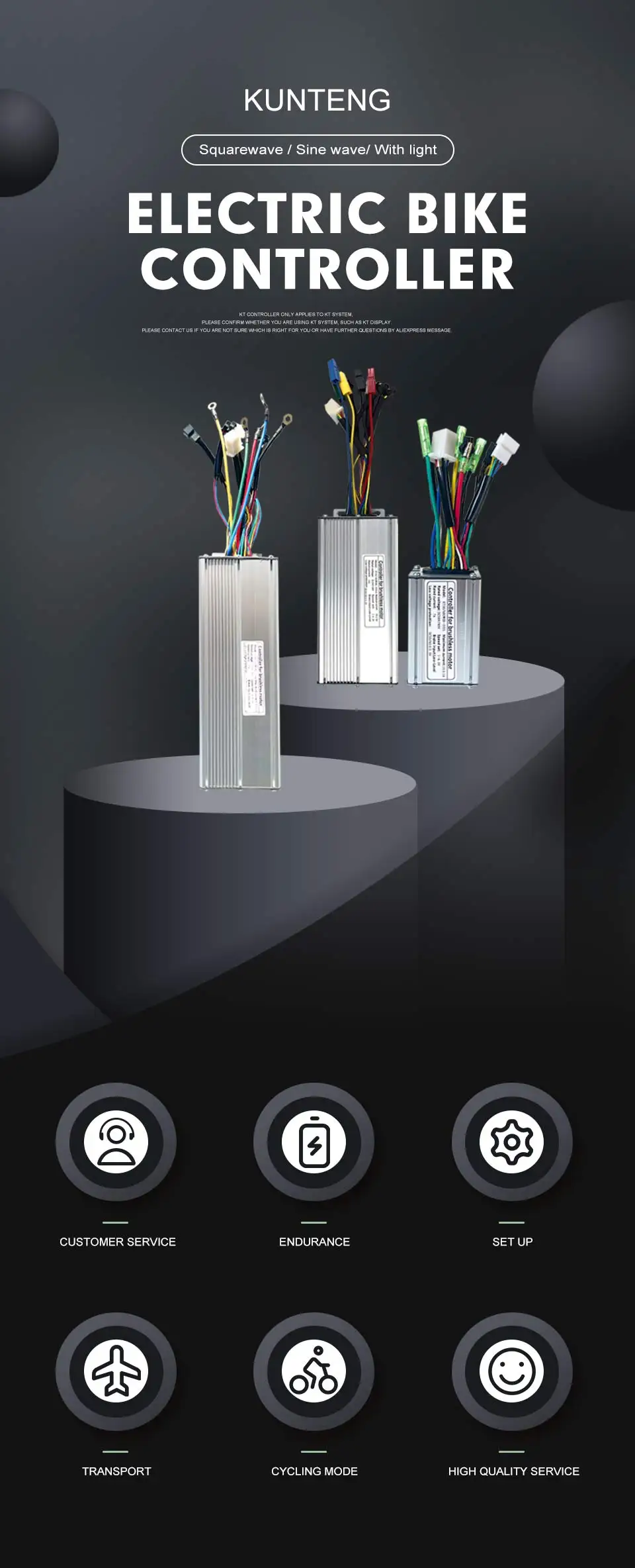 36-48V 56-90V 15A-50A KT Ebike Square Sine Wave Controller Group with All SM Connector Use for 250W-3000W Electric Bicycle Motor The power plug can be changed to Bullet plug/PP30/PP90/XT60/Type T as required. Please be sure to write the requirements in the order remarks!!! The current of the controller is subject to the maximum current. Please do not use the rated current as the current of the controller. Otherwise, other parts of the electric bicycle will be overloaded. |