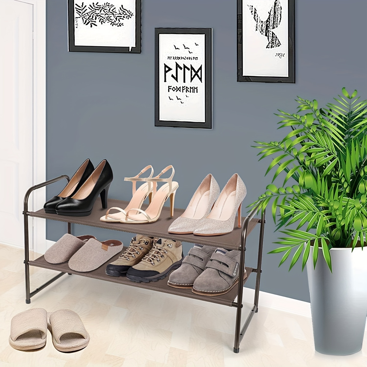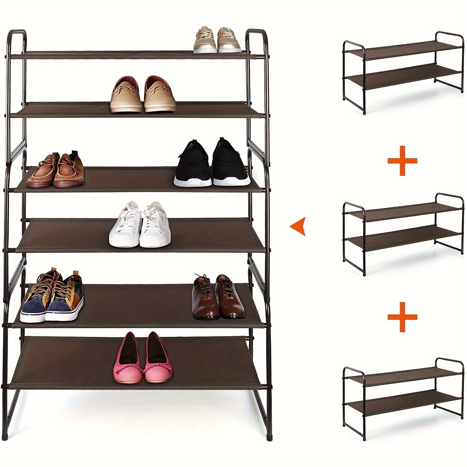This 3-layer Shoe Rack Can Store 9-12 Pairs Of Men's And Women's Shoes, With Additional Space At The Bottom For Slippers. It's Perfect For Organizing Your Kitchen, Living Room, Or Utility Room, Providing Extra Storage Space For Sundries. Multi-Functionality: https:In The Living Room, The Shelf Can Store Various Items, Helping To Keep Your Space Tidy. Place It In Your Closet To Organize Clothes Or In The Utility Room For A Cleaner Look. Stackable And Expandable: https:The Rack Includes 4 Connectors, Allowing You To Stack Multiple Units To Maximize Storage Space Vertically Or Connect Them Horizontally For Expanded Storage (purchase 2 Or More Units For Horizontal And Vertical Storage Solutions). Adjustable Layer Height: https:Easy To Assemble, Simply Clip The Shelves Into The Frame. The Adjustable Shelf Height Accommodates Shoes Of Different Sizes, Including High Boots. Sturdy And Durable: