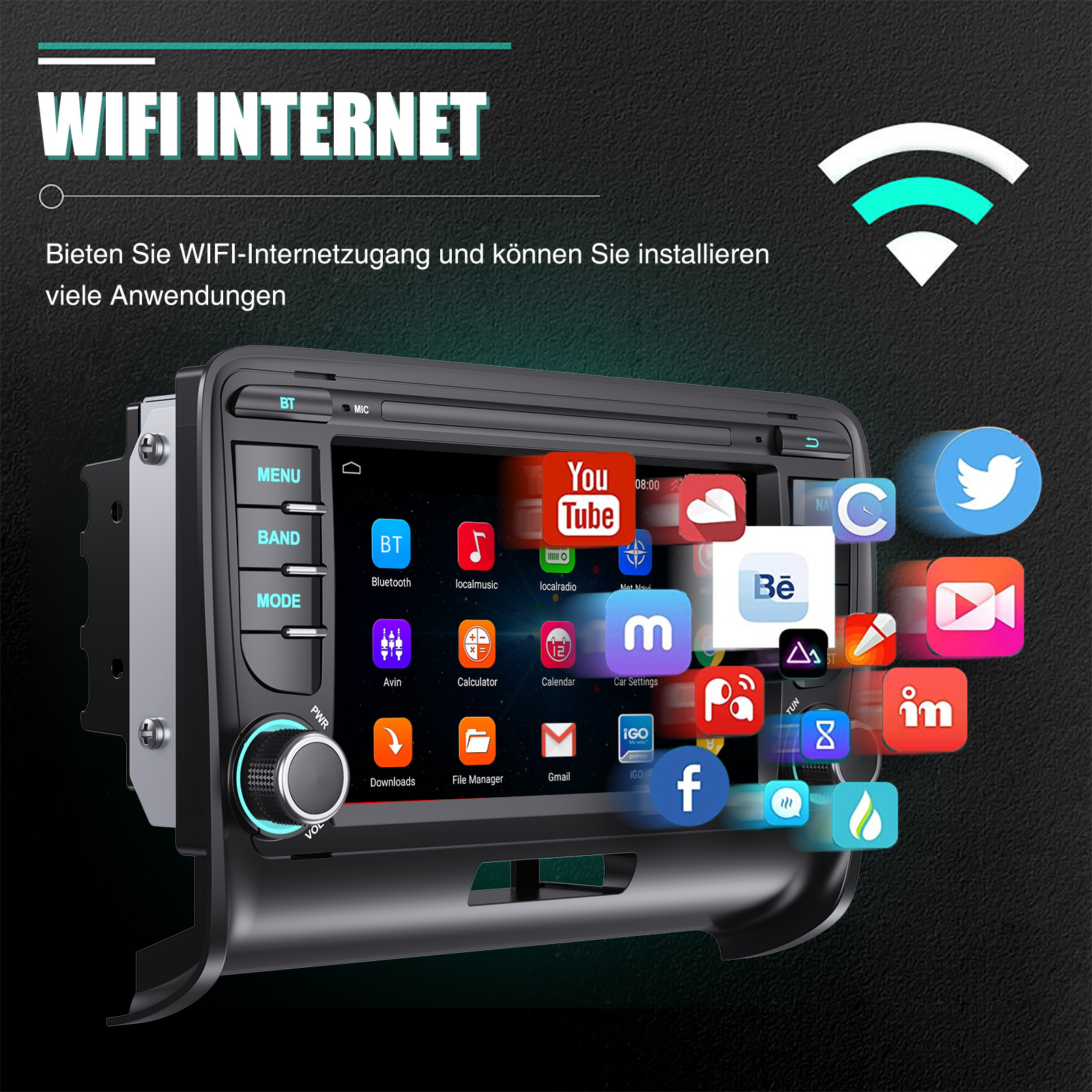 Navigationssystem und WLAN: Unterstützt WiFi-Verbindung. Nachdem Sie das WLAN verbunden haben, können Sie jede APP aus dem App Store herunterladen, z. B. Youtube, Tik Tok, Spotify usw. Autoradio mit GPS, genaue Positionierung, stabiles Signal, Unterstützung bei der Verwendung von Online- oder Offline-Karten, keine Sorge mehr, sich zu verlaufen, wenn Sie unterwegs sind. Unabhängige Antenne sorgt für starken WLAN-Empfang.