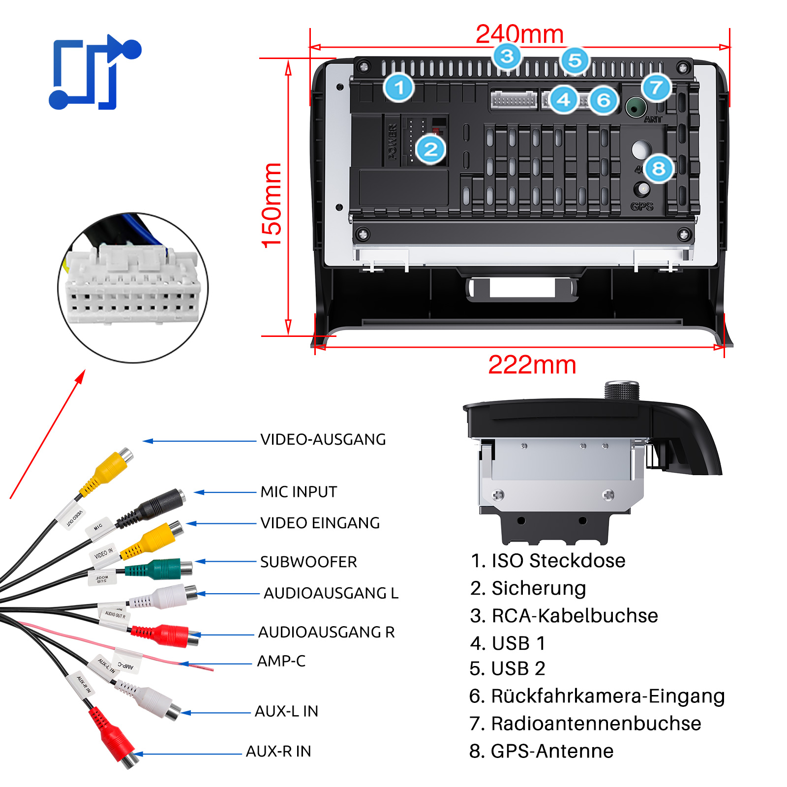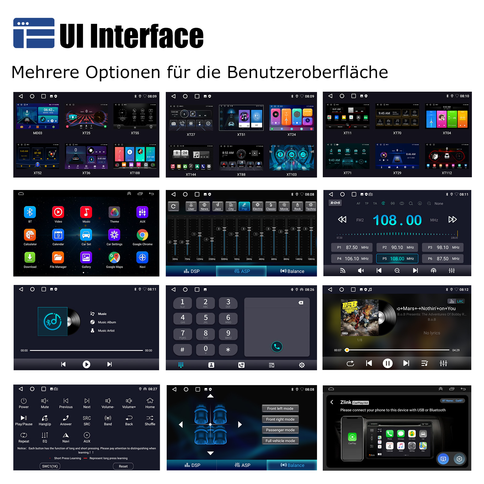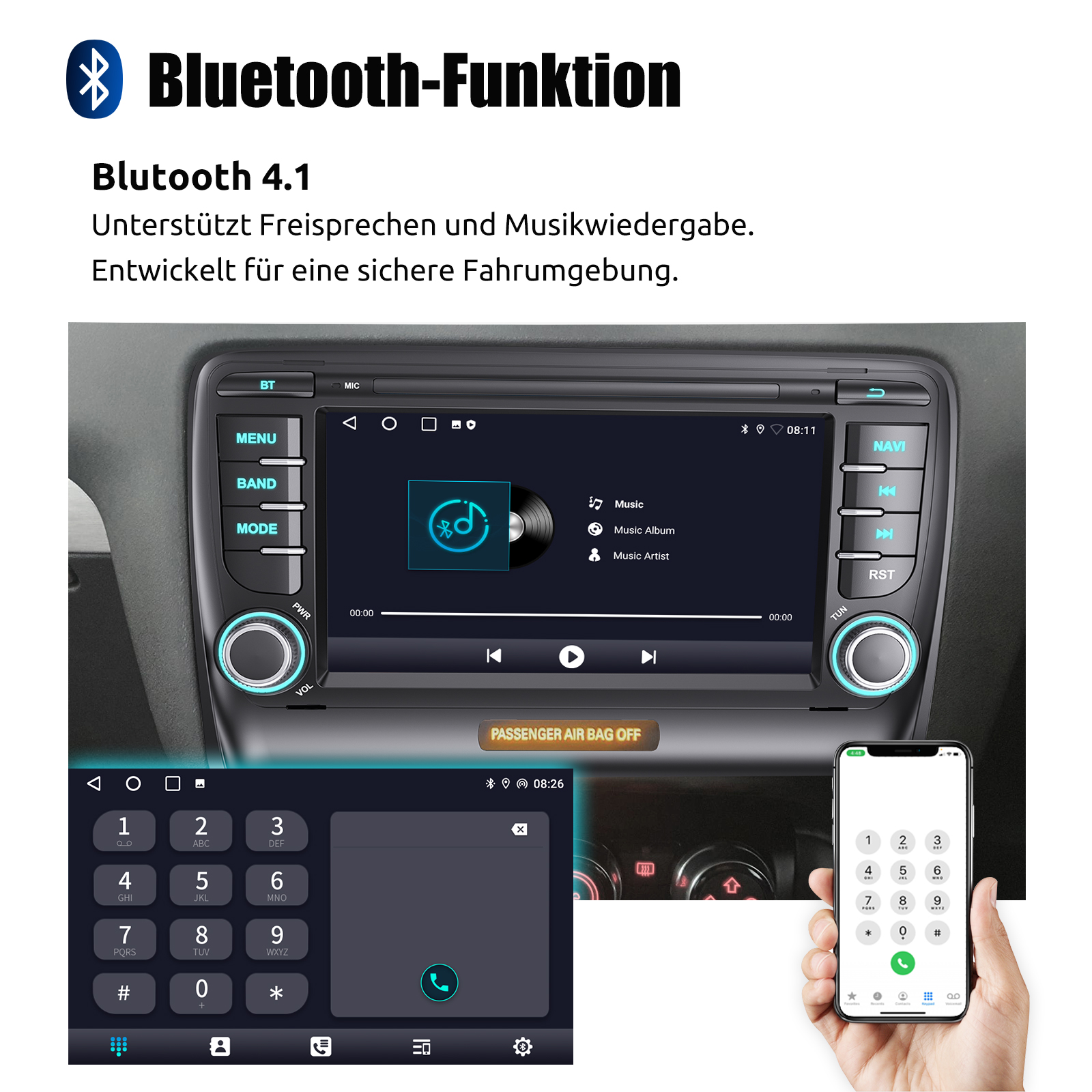 RDS/FM-Radio und Bluetooth und ASP Sound: Unterstützt Bluetooth 4.1, mit integriertem Mikrofon und Lautsprecher, damit Sie während der Fahrt freihändig telefonieren können. Unterstützt den Zugriff auf das Telefonbuch, die Musikwiedergabeschnittstelle usw. RDS unterstützt. Sie können 18 FM Radiosender speichern. Eingebauter ASP-Chip. Unterstützt 32-Band-EQ-Einstellung, die nach Ihren persönlichen Vorlieben eingestellt werden kann.Der Ihrem Originalsound sehr ähnlich ist.4 x 45W Verstärker, Surround-Sound und Subwoofer-Ausgang.
