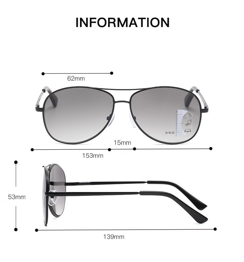 Large Pilot Progressive Multifocal Reading Glasses Black Magnifier +1.0 to +4.0