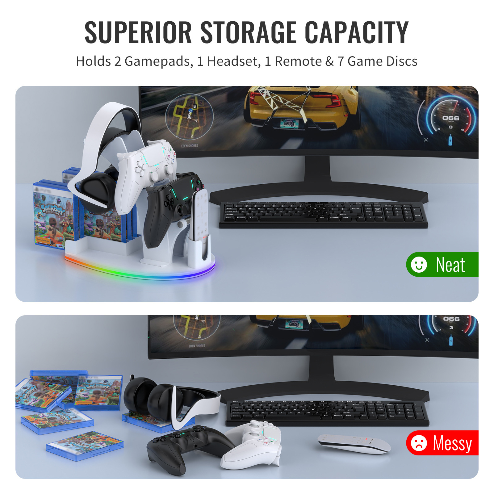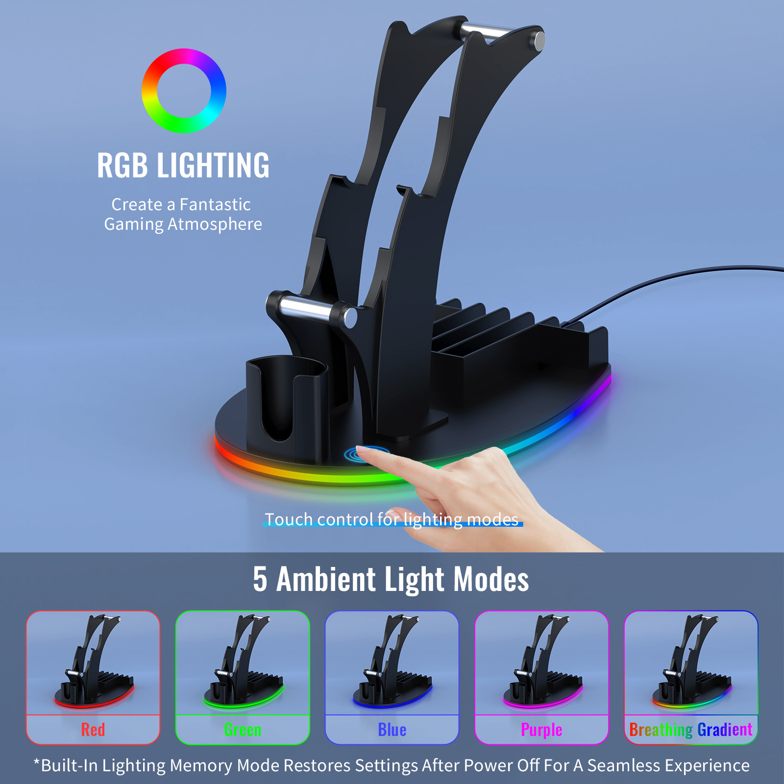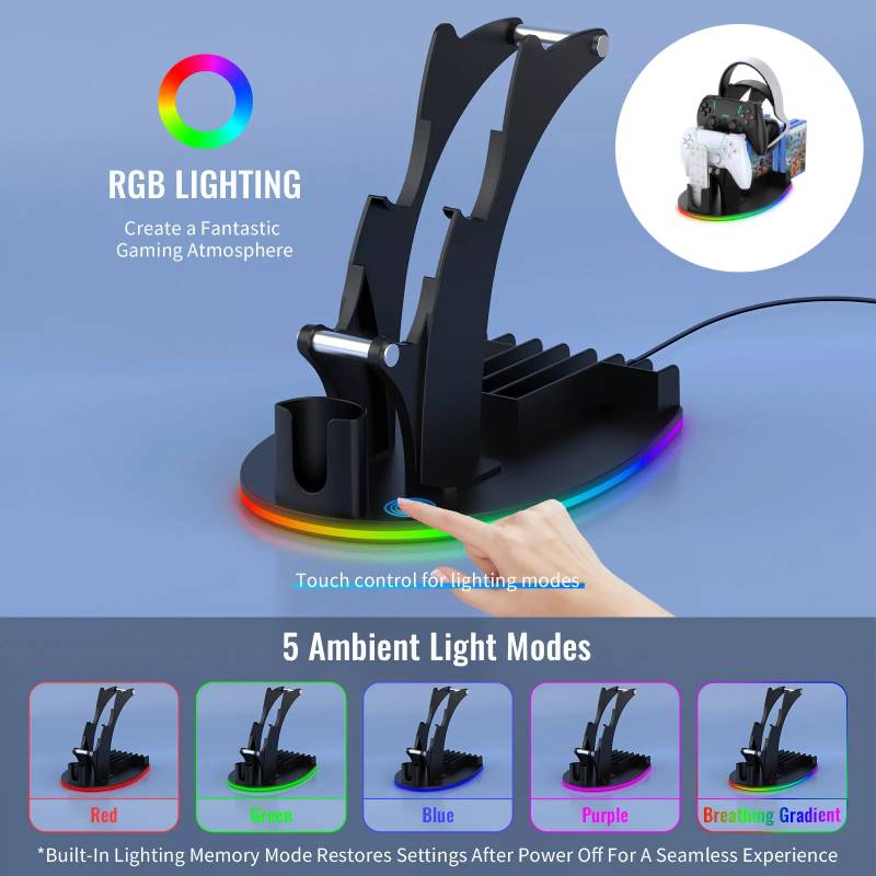 For PS5 / PS4 / Xbox Series X /Xbox One Handle Desktop Storage Stand w/RGB Light
