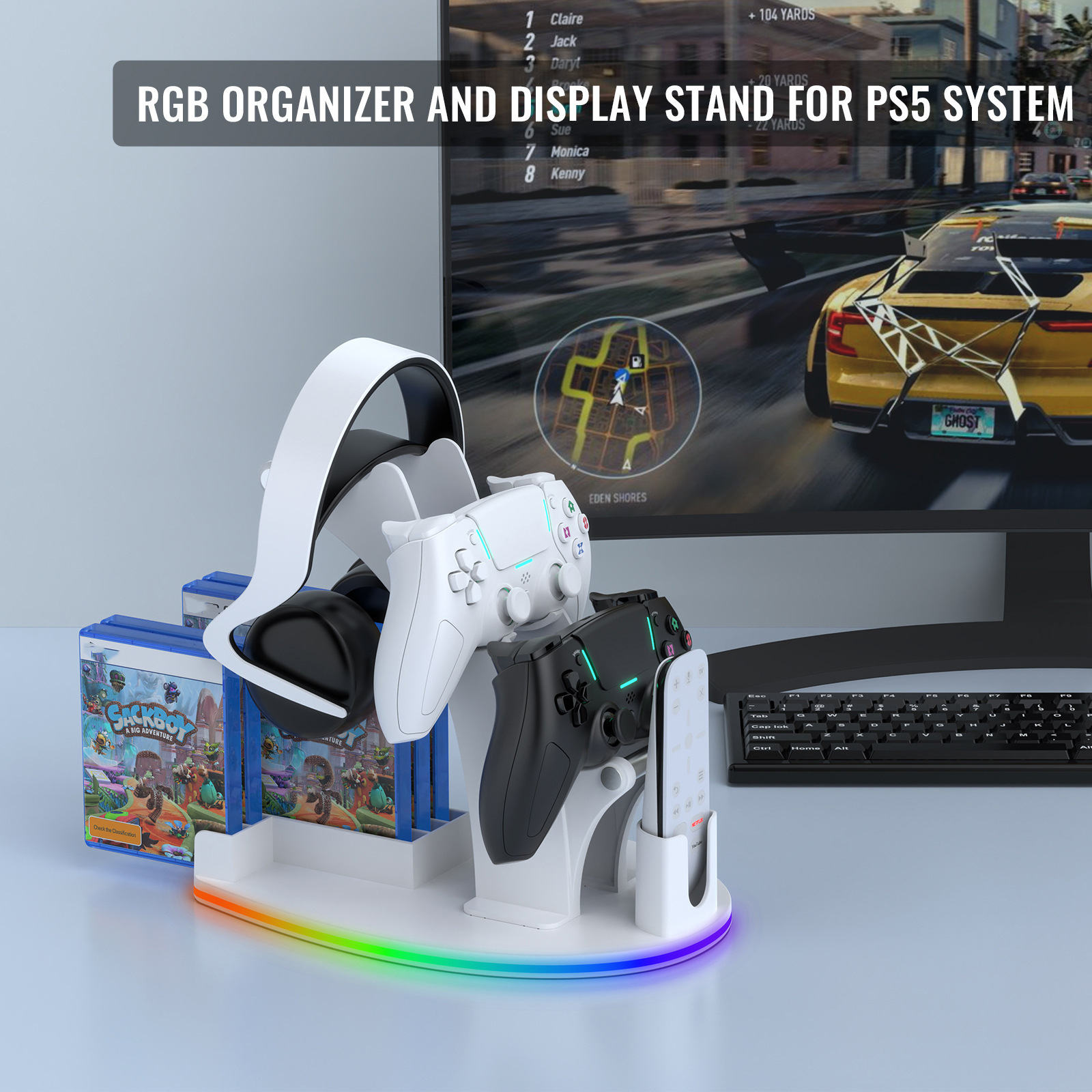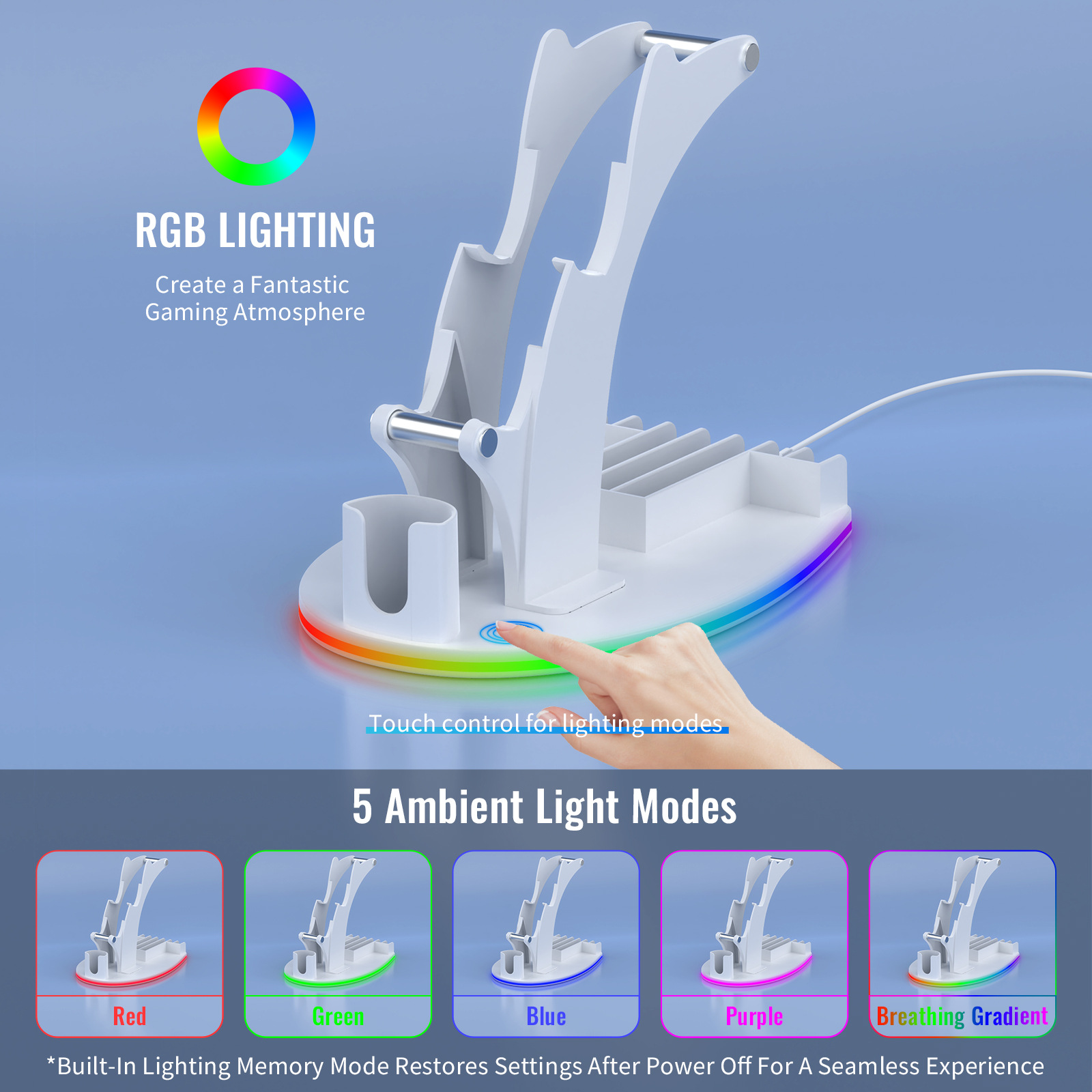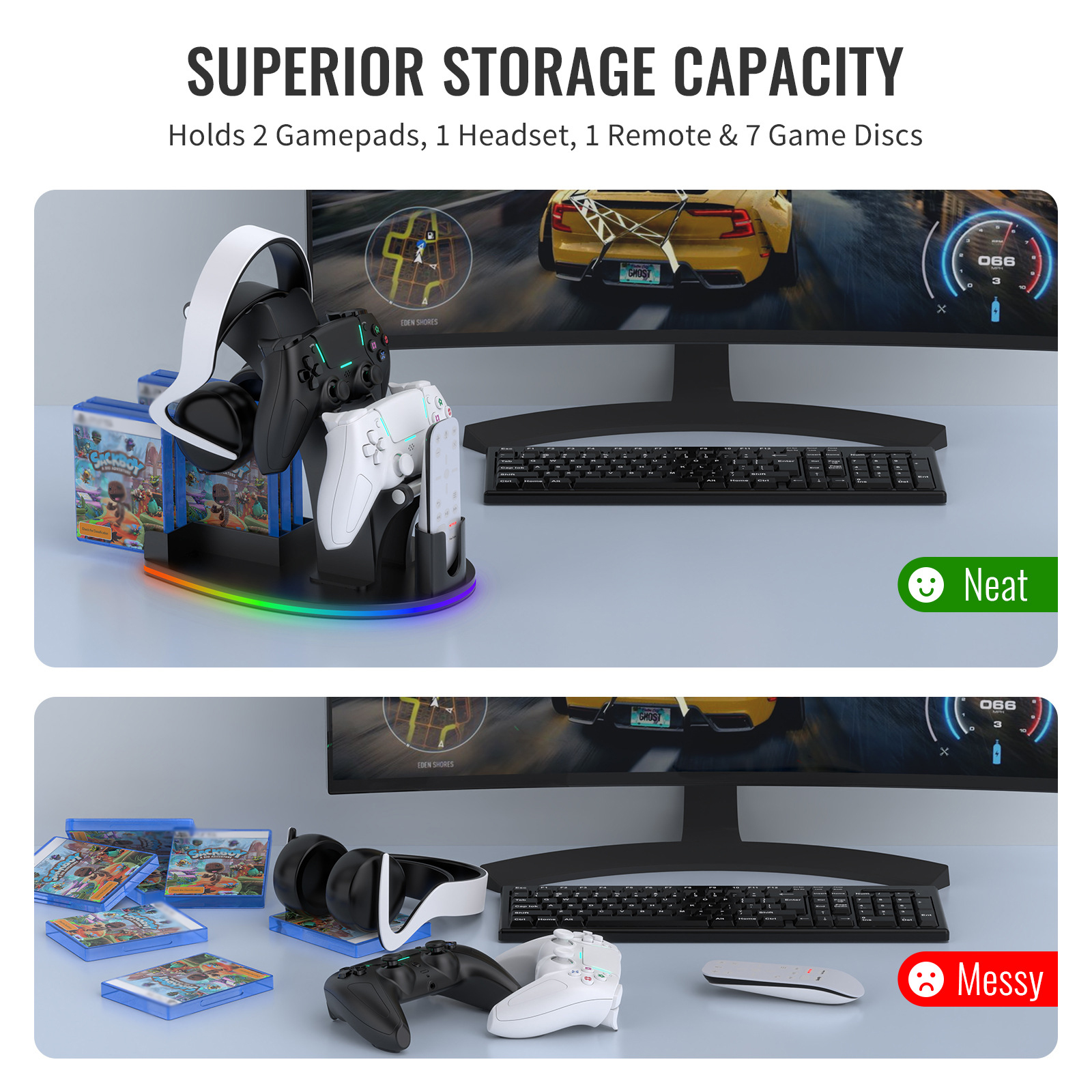 For PS5 / PS4 / Xbox Series X /Xbox One Handle Desktop Storage Stand w/RGB Light