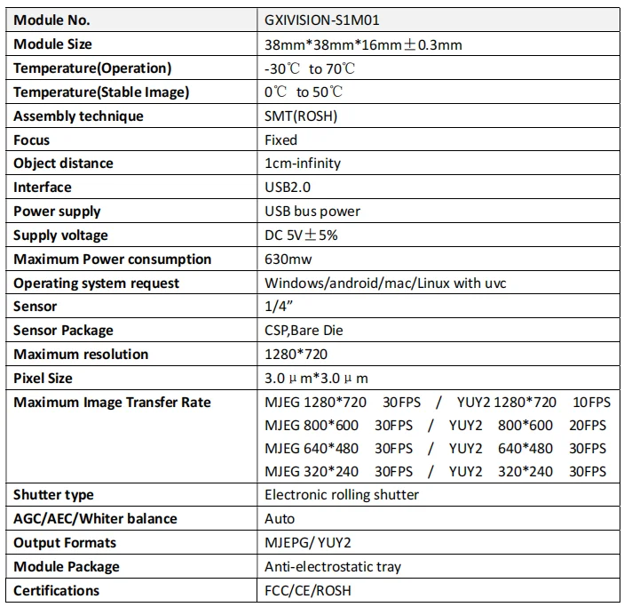 720P :This usb camera module adopts 1MP OV9732 sensor,picture resolution: 1280x 720 Max.Frame Rates: MJPG 1280*720 30fps;YUV 1280*720 10fps;