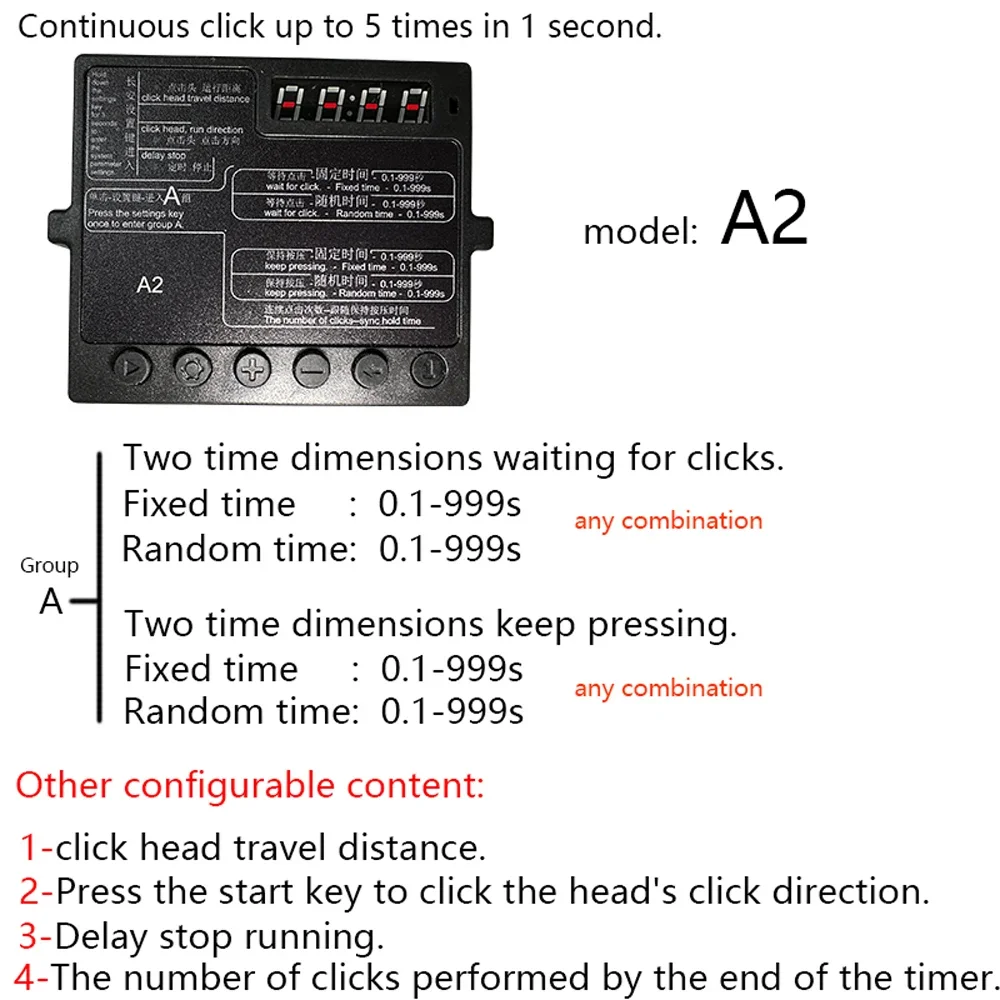 Speeds can be adjusted at will, Click within a fixed time(0.1-999s) or click randomly(0.1-999s)
