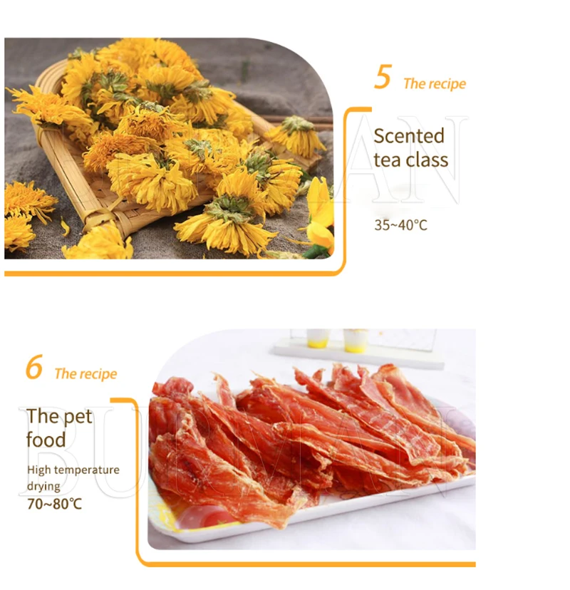 4. Fish drying machine can dry all kinds of farmer's products, such as party ginseng, wolfberry, peanut horn, chrysanthemum. Mushrooms, garlic and so on..