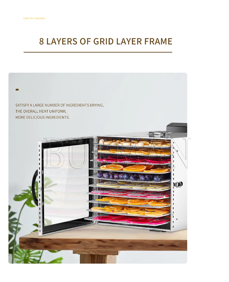 10 Layer Fruit Dryer Food Dehydrator Meat Seafood Food Processing Machine Commercial Household Vegetables Kitchen Appliances