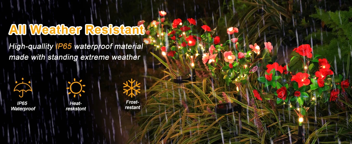3: WEATHER RESISTANT: These outdoor solar garden lights are IP65 waterproof rated to withstand most weather conditions and maintain optimal performance. You don't have to worry about them being damaged in bad weather.