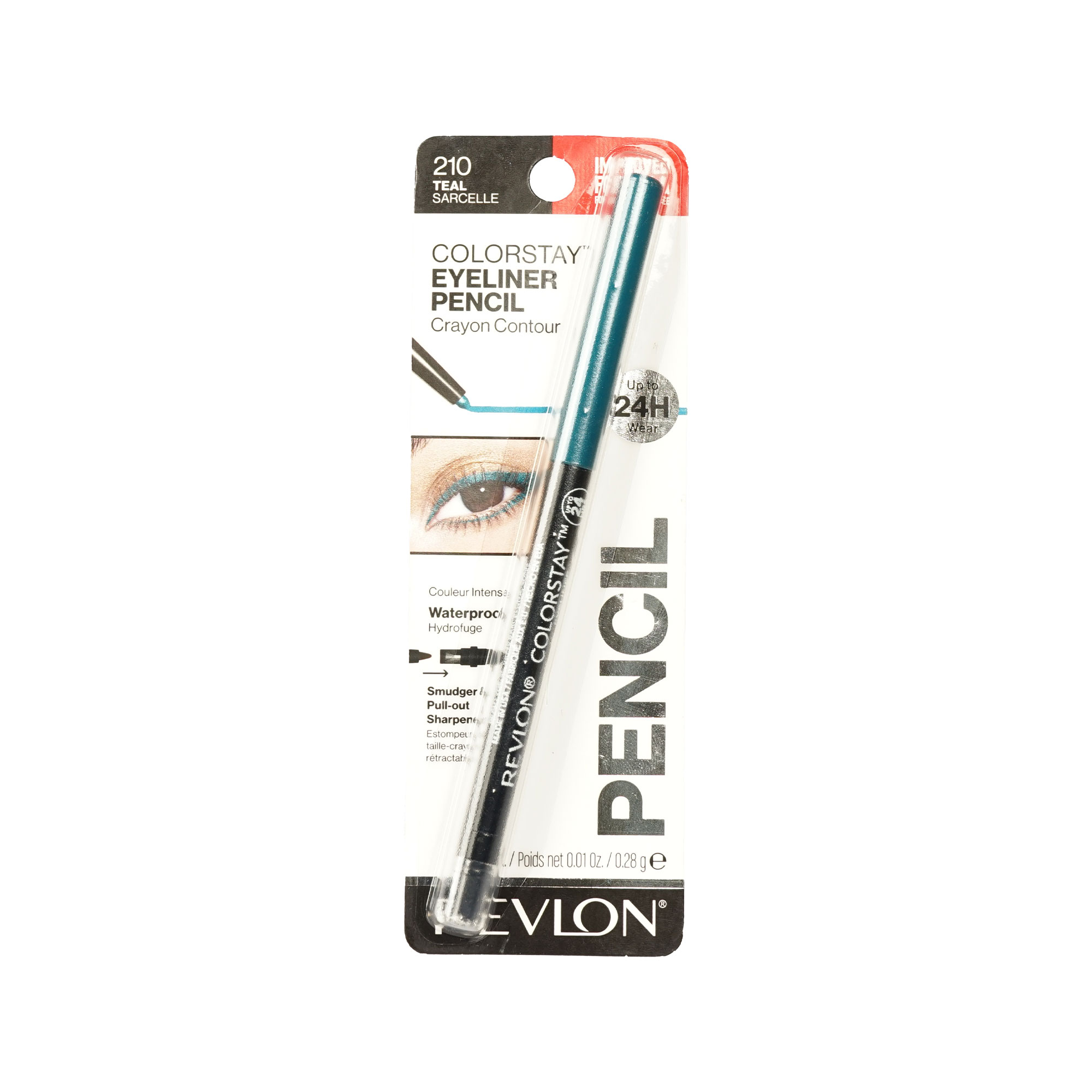 Revlon ColorStay Pencil Waterproof Eyeliner 210 Teal is a long-lasting, waterproof eyeliner designed to define and enhance your eyes with vibrant color. The Teal shade offers a bold, eye-catching pop of color, perfect for adding a touch of fun or making a statement with your eye makeup. This pencil eyeliner is formulated to be smudge-proof and waterproof, ensuring that it stays in place throughout the day or night without fading, smudging, or running. To use, simply apply along the upper and lower lash lines, starting from the inner corner and working outward.