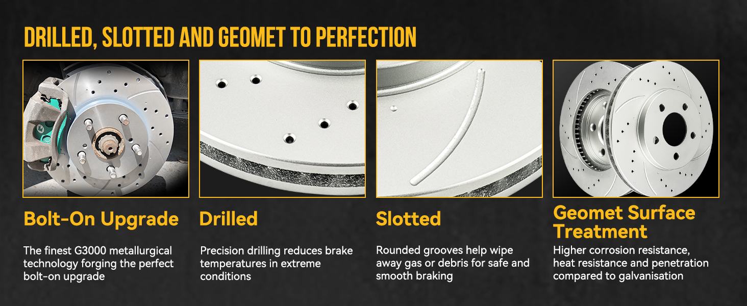 Features: Excellent Performance: The rotors are crafted from high-quality G3000 cast iron and are 100% precision-cut to minimize dust and provide a smooth surface for optimal braking performance, thus ensuring strength, stability, and durability. Geomet surface treatment provides increased corrosion, heat, and penetration resistance. Safe Braking: Our brake rotors ensures superior noise-free braking and exceptional vibration control, enhancing the safety of your driving experience. Each component undergoes rigorous testing to meet or exceed SAE standards, ensuring reliable performance in all types of extreme conditions. Customized formulas are employed to guarantee quiet operation and enhanced stopping power. Customer Support: KAC has a longstanding commitment to the research, development, and manufacturing of automotive components, ensuring that all parts are 100% fit for the original vehicle. We provide a comprehensive 5-year warranty; should you encounter any issues, please do not hesitate to contact us for assistance.