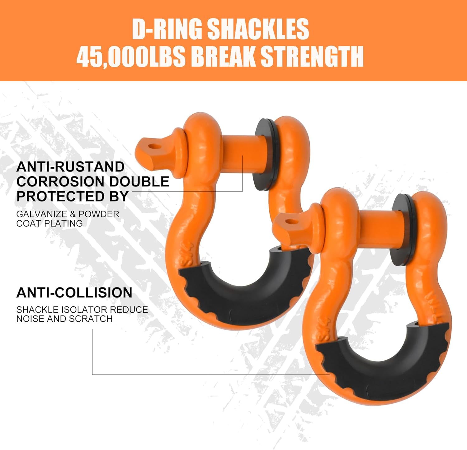 D RING SHACKLES: The electro-galvanized coated bow shackle is rust and corrosion resistant, and can withstand 4.5Ton x 4 capacity to recover trapped vehicles, including Truck, SUV, 4x4 and UTE, etc.