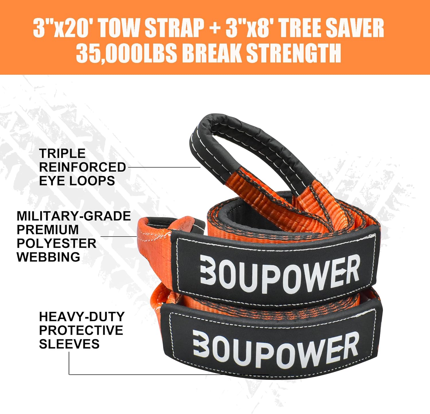 TREE SAVER: Our towing strap has a working strength of 12,000lbs to pull your vehicle out of mud and other awkward environments. It's a must-have for off-roaders, emergency responders, or anyone who needs to haul heavy loads.