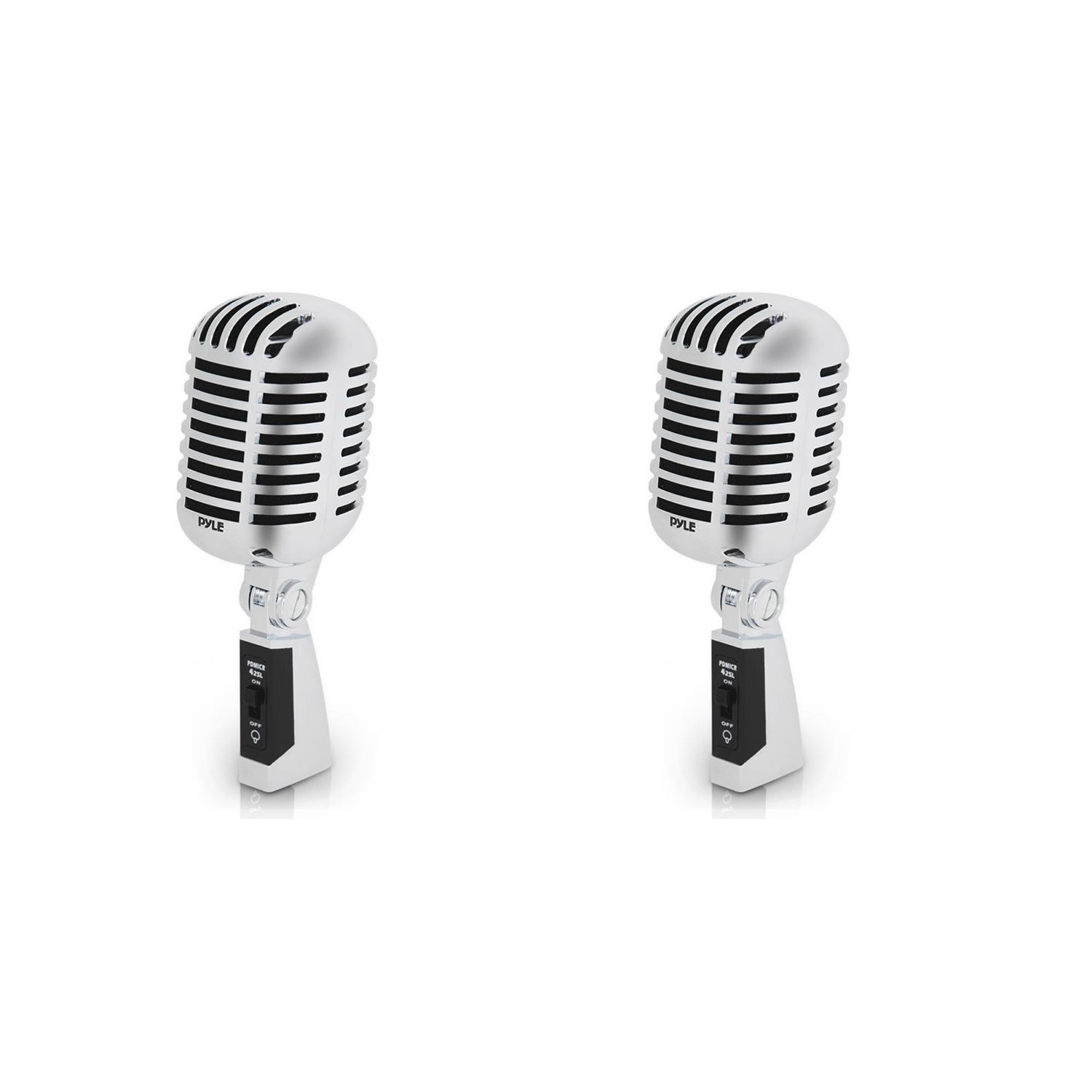 Offering maximum stage control, the Pyle 2-Pack Pro Vintage Retro-Style Dynamic Studio Desktop Vocal Mic comes with a 16-foot-long XLR cable. Constructed with your convenience and talent in mind, this microphone is built to last with rugged construction and steel mesh grill.