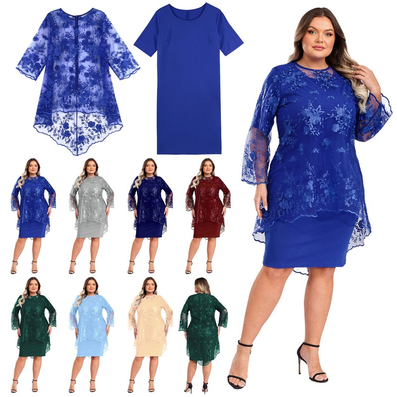 Plus Size Women Dress with Lace Cover Up Mother of The Bride Dress Wedding Guest