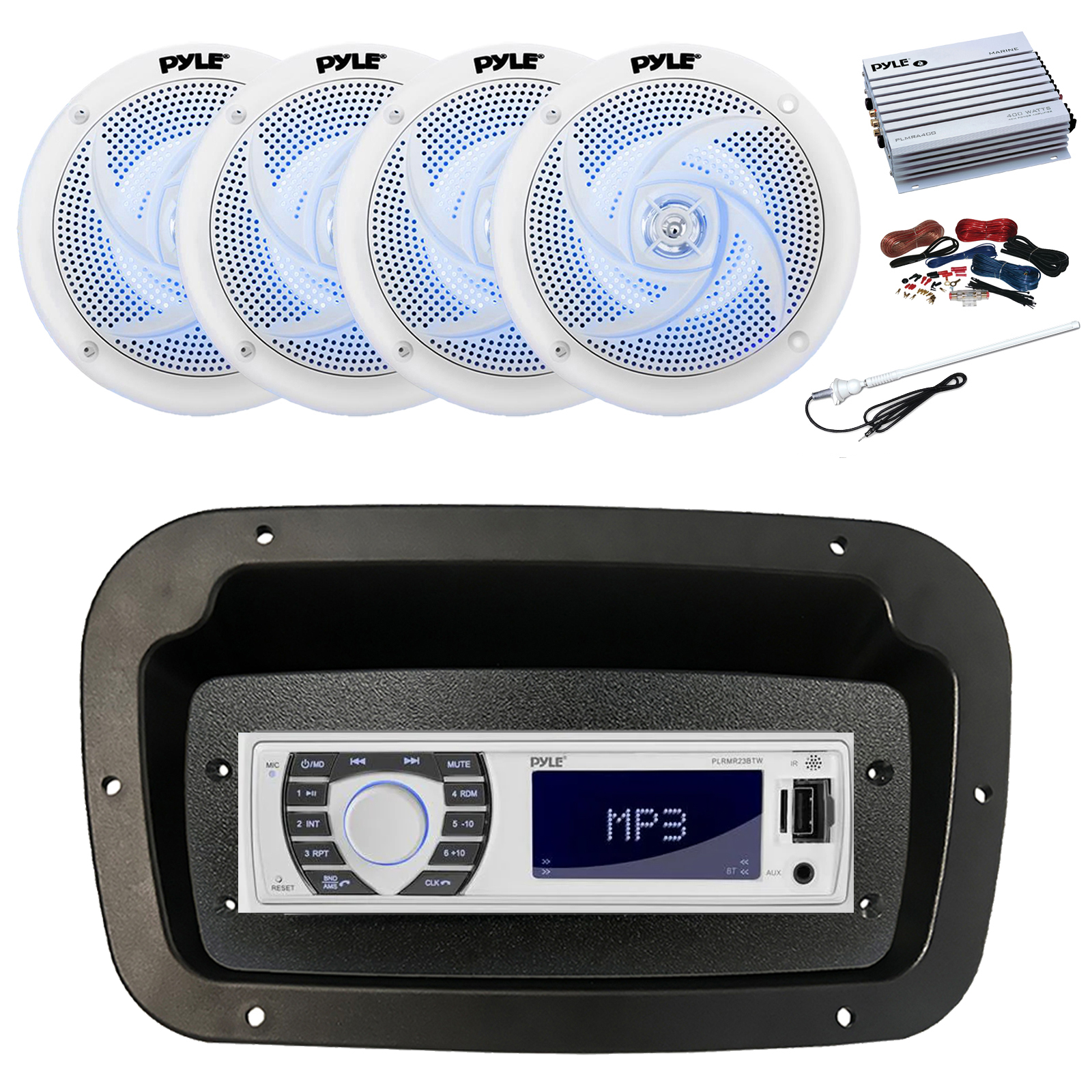 Pyle Marine Radio, Adapter,Spa Bezel,Antenna,Amp,Kit, 4x 5.25" LED White Speaker