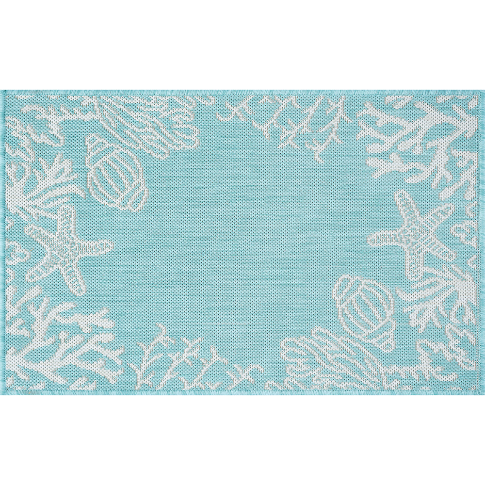 2x3 Blue Shells Sea Coral Fish Nautical ECO1506 - Aprx 2' x 2' 11"