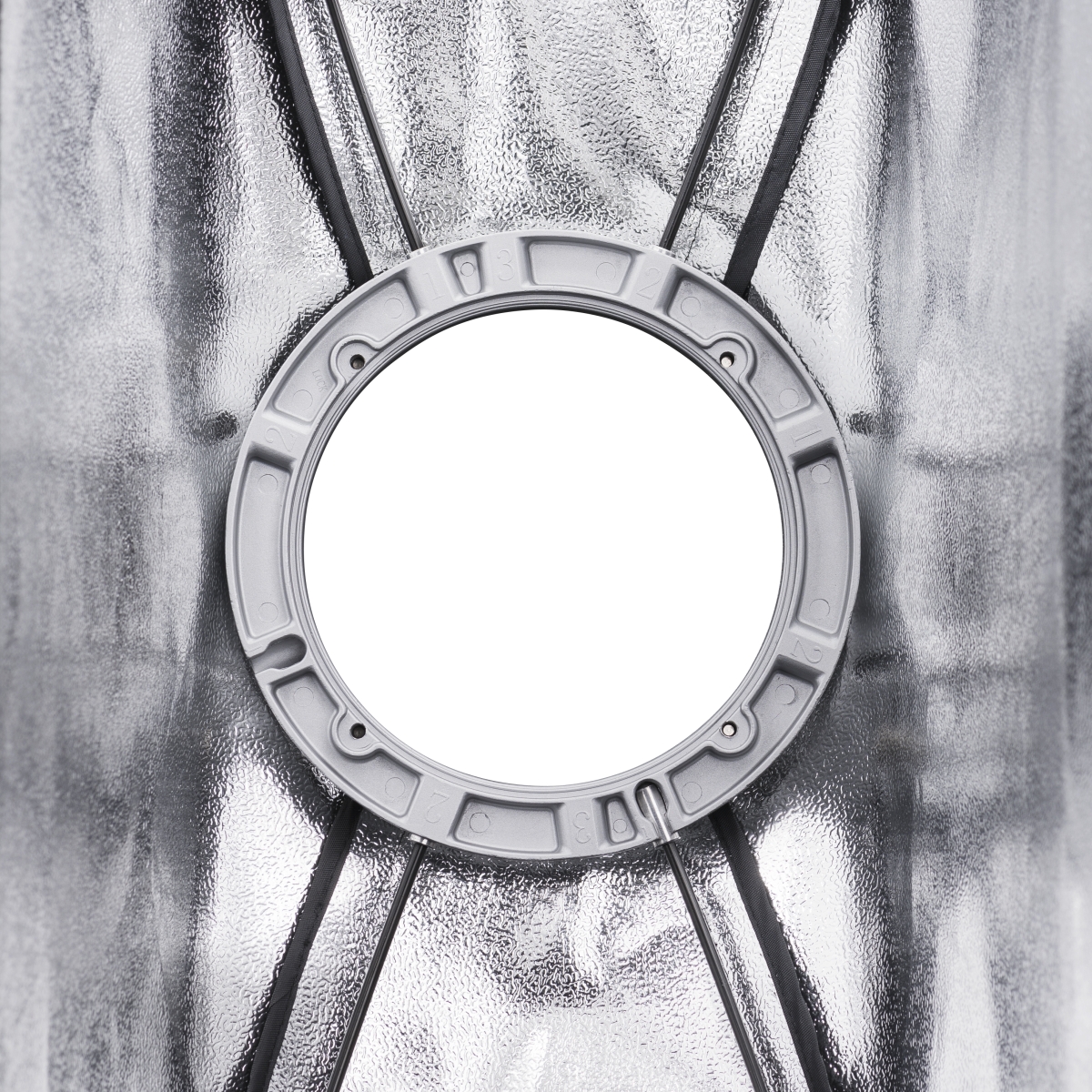 Das hochwertige Striplight mit 30x120cm ist der ideale Helfer für weiche und gleichmäßige Ausleuchtung. Ob bei Aktaufnahmen oder bei Produkten, an denen Lichtkanten erwünscht sind - immer wenn es auf möglichst reflexfreie Ausleuchtung ankommt, ist das Striplight das richtige Werkzeug. Es ist dank seiner innovativen Technik mit wenigen Handgriffen einfach aufzubauen. Zudem kann es ohne großen Kraftaufwand um 360° gedreht werden. Der mitgelieferte Zwischendiffusor kann wahlweise eingesetzt werden, um das Licht noch weicher werden zu lassen. Front- und Zwischendiffusor sind mittels Klettverschluss bzw. Gummiband einfach abnehmbar.