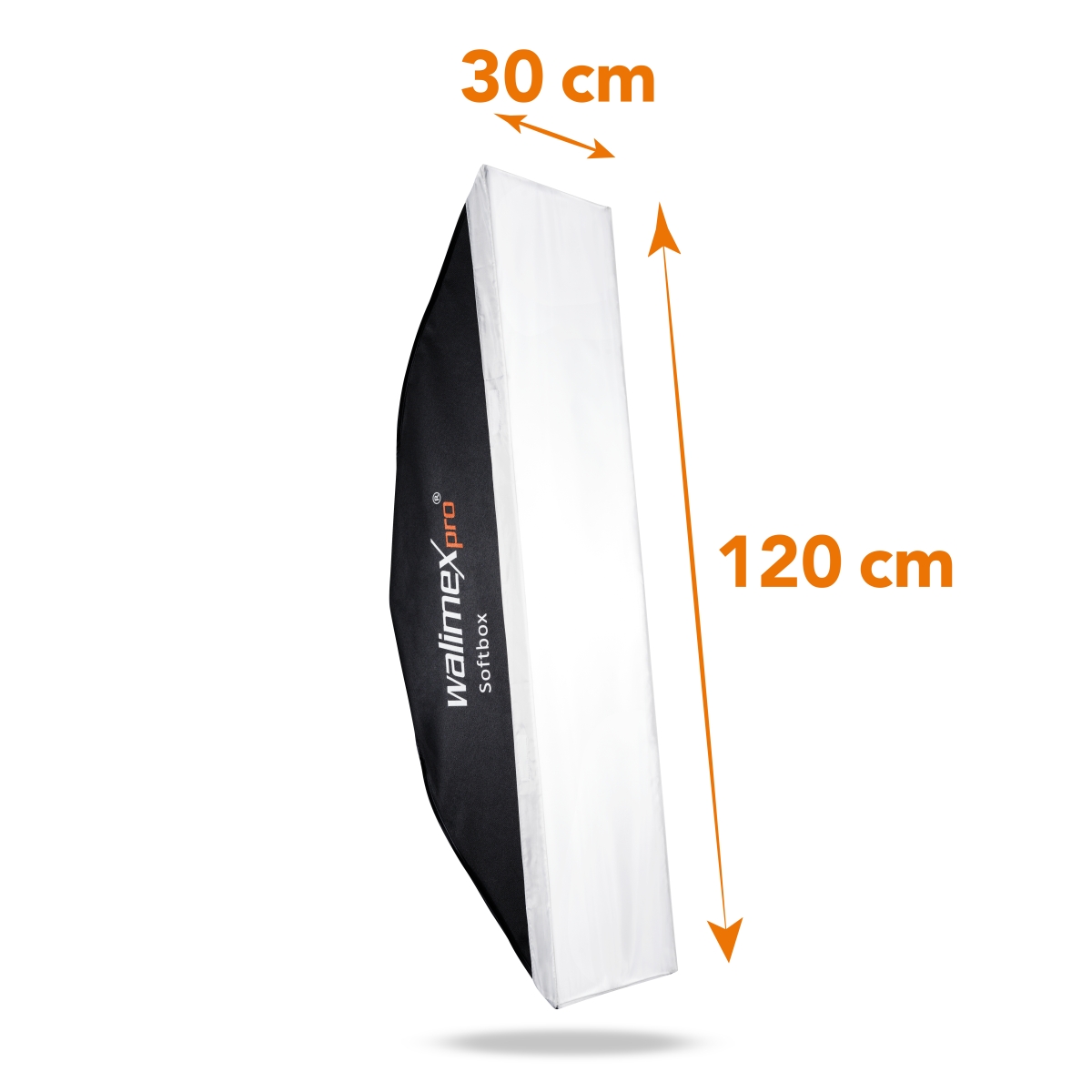 | Zubehör | • 1x Walimex pro Striplight 30x120cm mit Front- und Zwischendiffusor sowie praktischer Transporttasche |