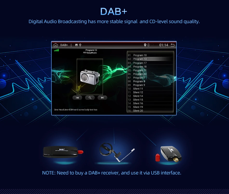 | Digital Radio DAB+ | Support, need to buy DAB+ box separately |