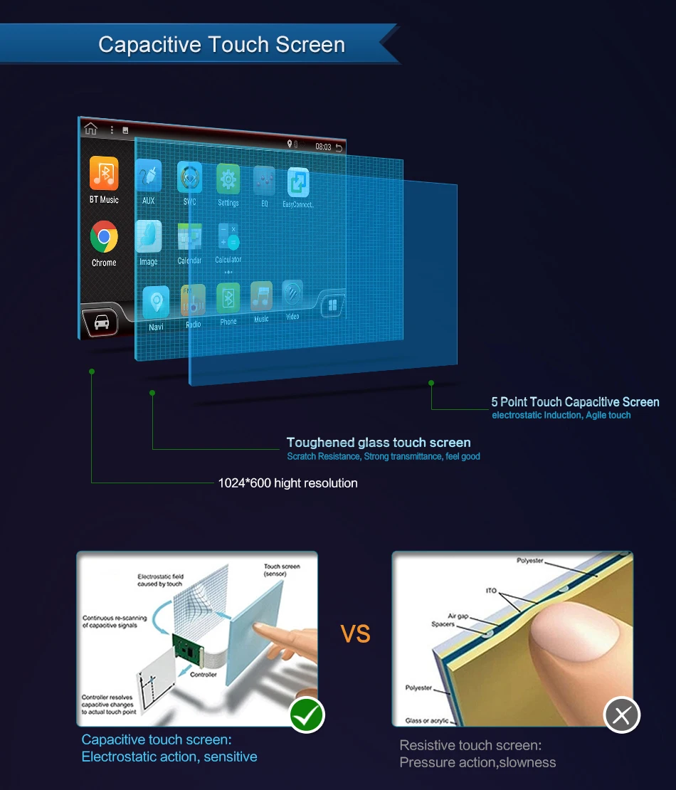 ❉TFT LCD with 1024 x 600 pixel high definition resolution.