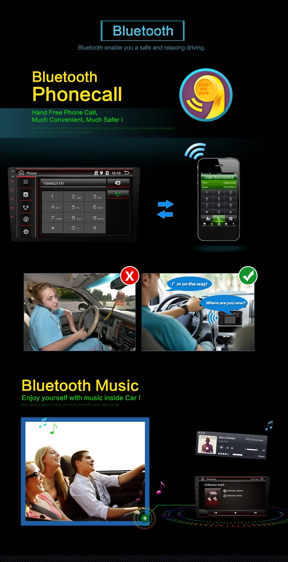 ❉Build-in Bluetooth 5.0 with A2DP/Hands Free/Phone book,Preset Multi EQ Settings
