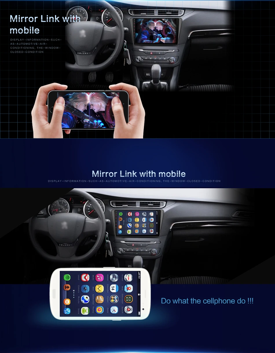 | Support Bluetooth Handfree Phone call | Support Mirror link and Air Play |