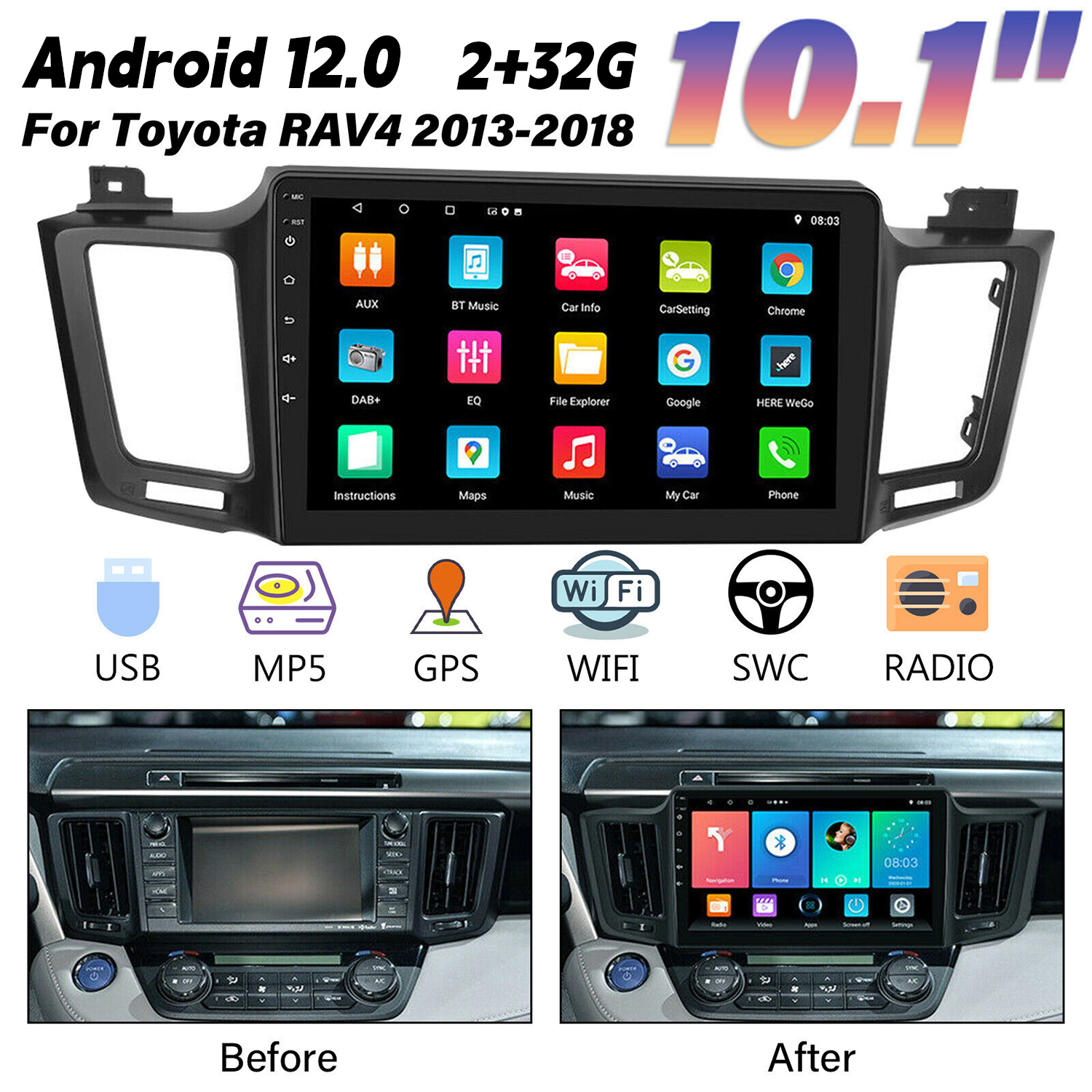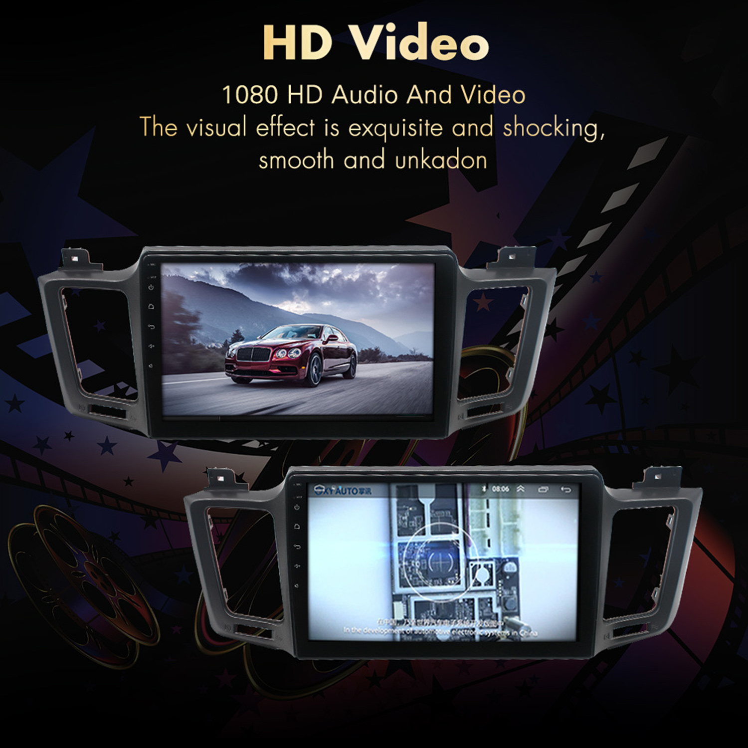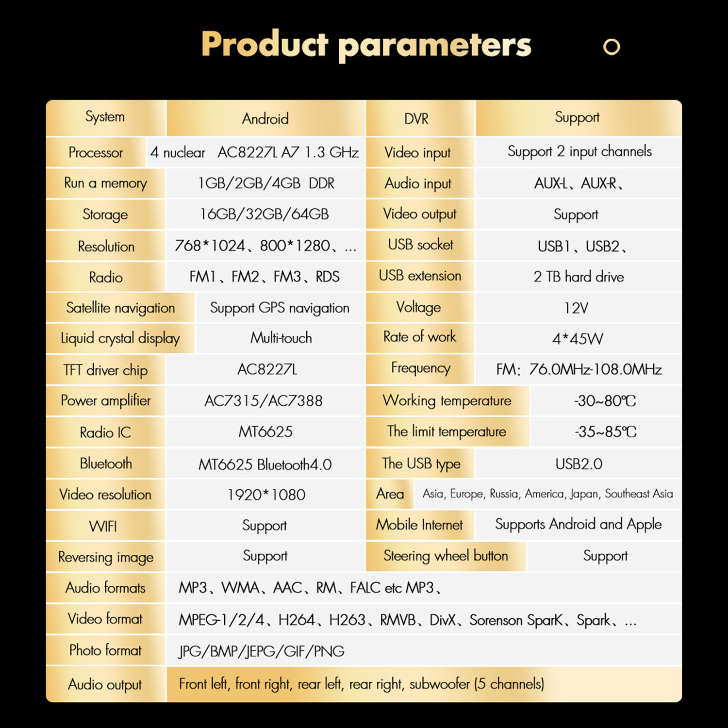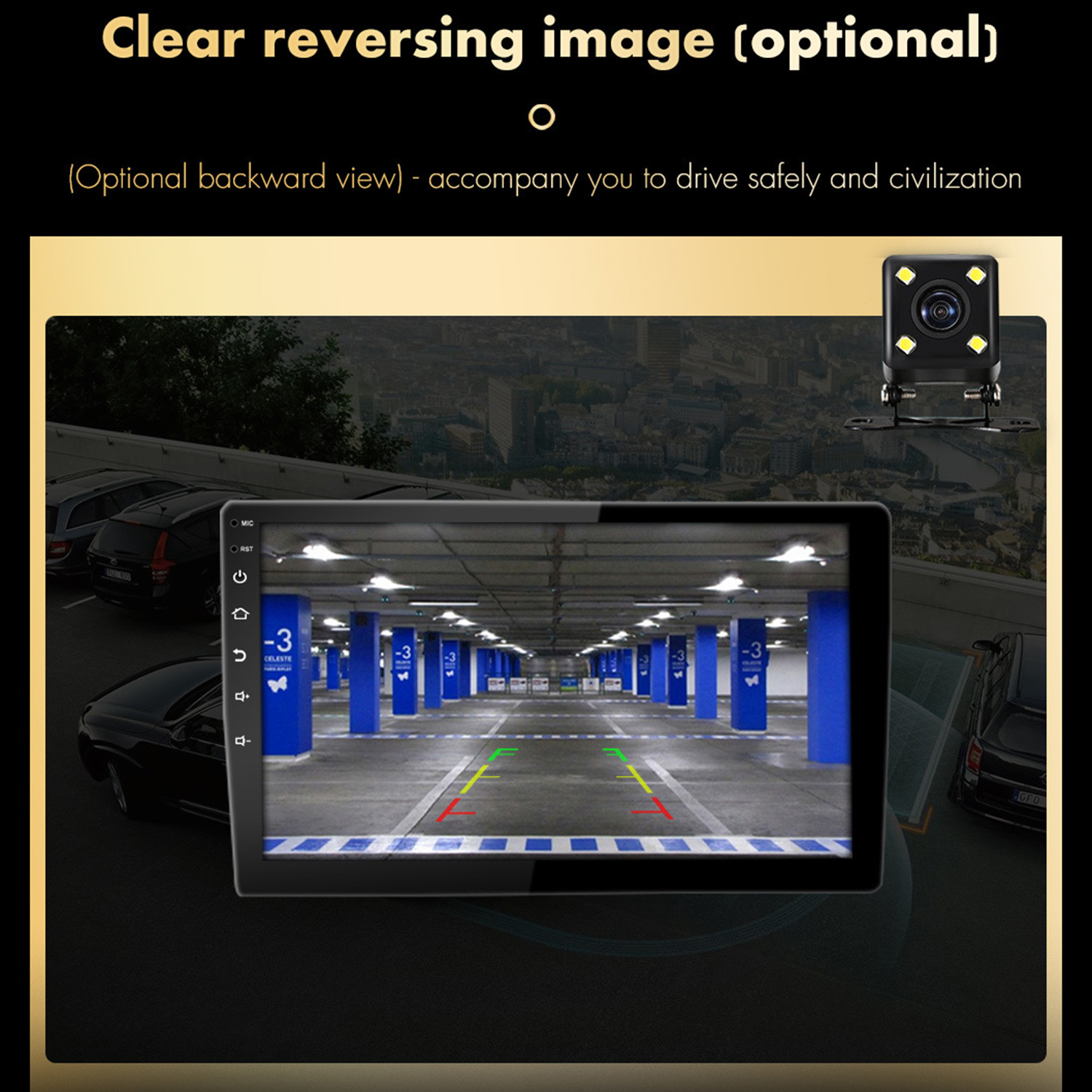 6.Rear view function:Support Rear view camera input, backing car more safer and convenient