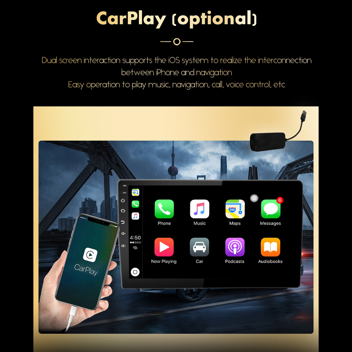 5.DVR input function:Support USB external driving recorder (DVR) input (Only for DVR with APP), you can control the DVR by the APP