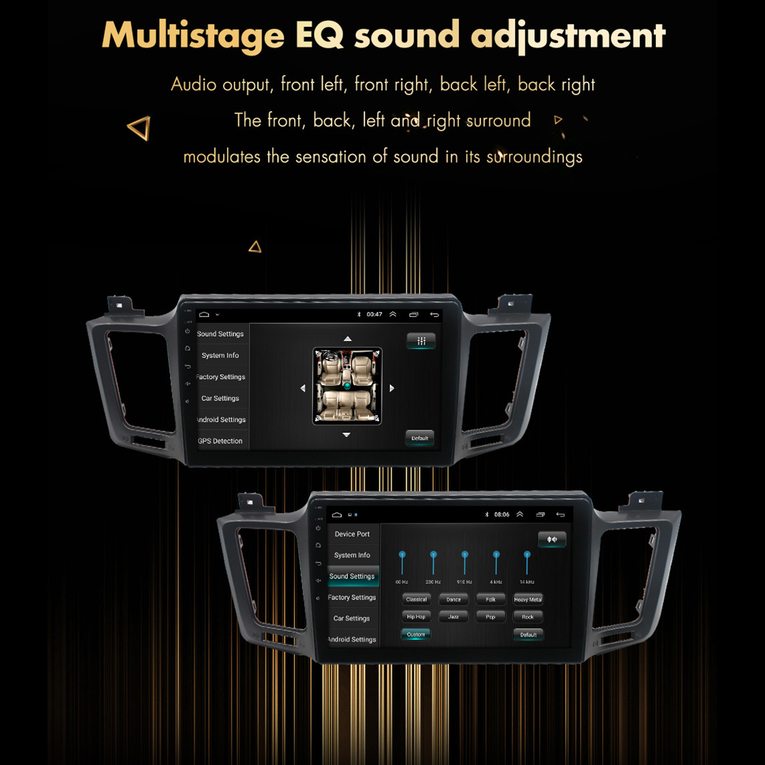 9.Improve sound quality with equalizer, use EQ to adjust the sound to render better results